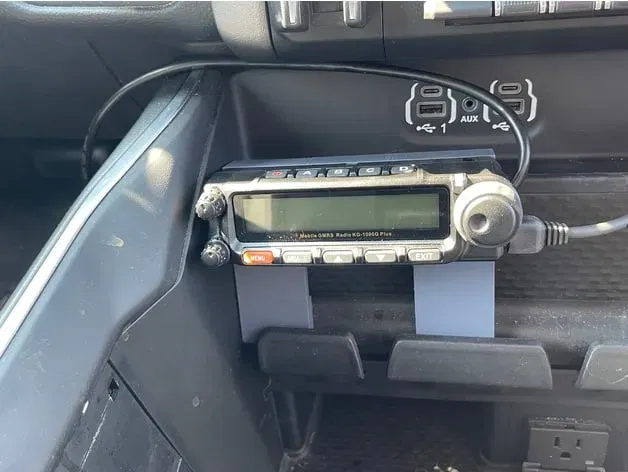 Muốn gắn chiếc Wouxun KG-1000G Plus của tôi vào chiếc Ram 2019 mà không cần khoan lỗ. Tấm này được thiết kế để gắn các tấm gắn mặt và ốc vít đi kèm với radio. Nó trượt vào giá đỡ điện thoại và móc qua phía trên để giữ cho nó không nghiêng ra khỏi trọng lượng.