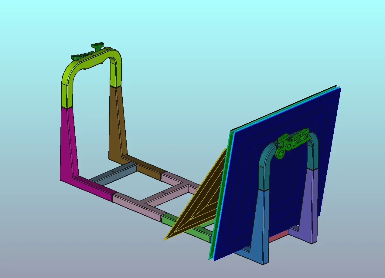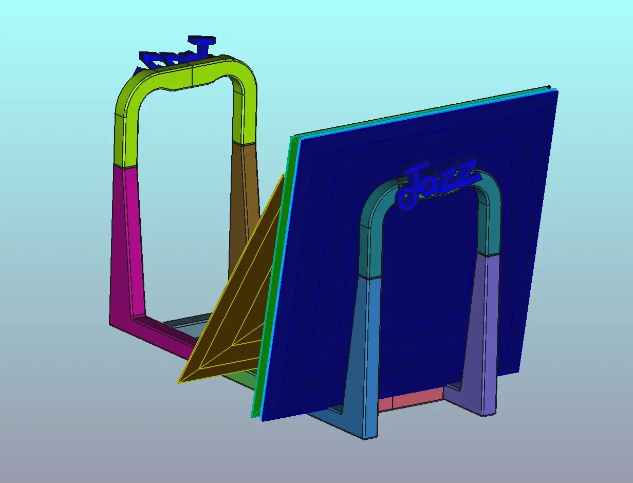This holder for vinyl records was conceived to lay on the floor but it can be set on a shelf big enough or on a raised plane if you prefer. The shape of the brackets at the extremities allow some gap with the records stack for folding one disc after the other to search through the collection. Each single member has been designed with internal ribs to reinforce the structure. Interface pins size and shape have been studied to minimize risk of cracking under the load of the many discs. The front brackets have two holes to install a 3D printed label. A label model and .gcode with “Rock” and a label with “Jazz” writings are provided. Label design can be modified in your preferred CAD or STL modeler.