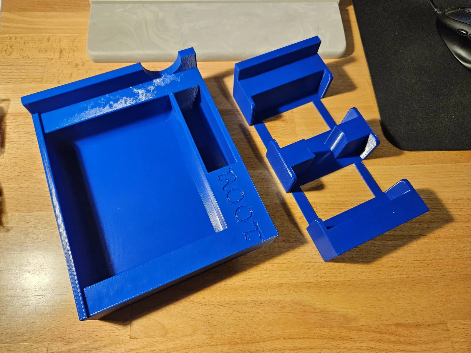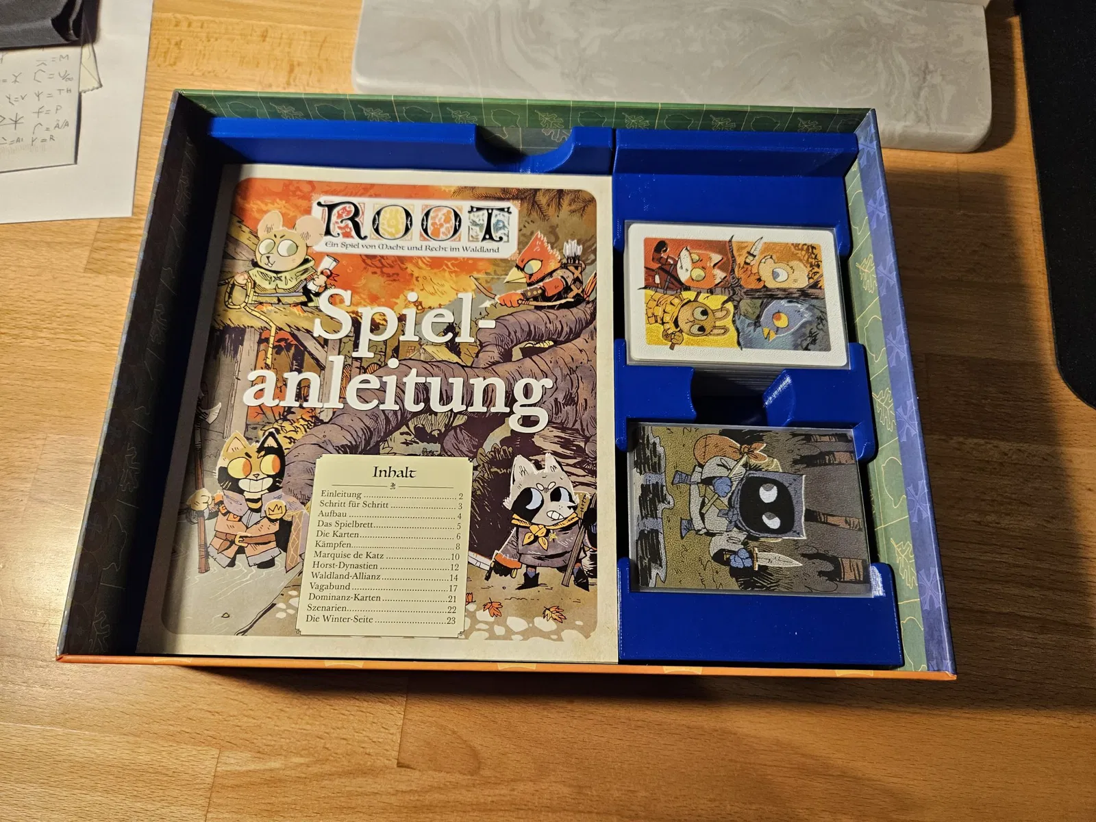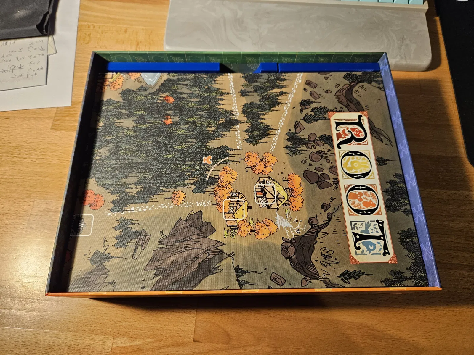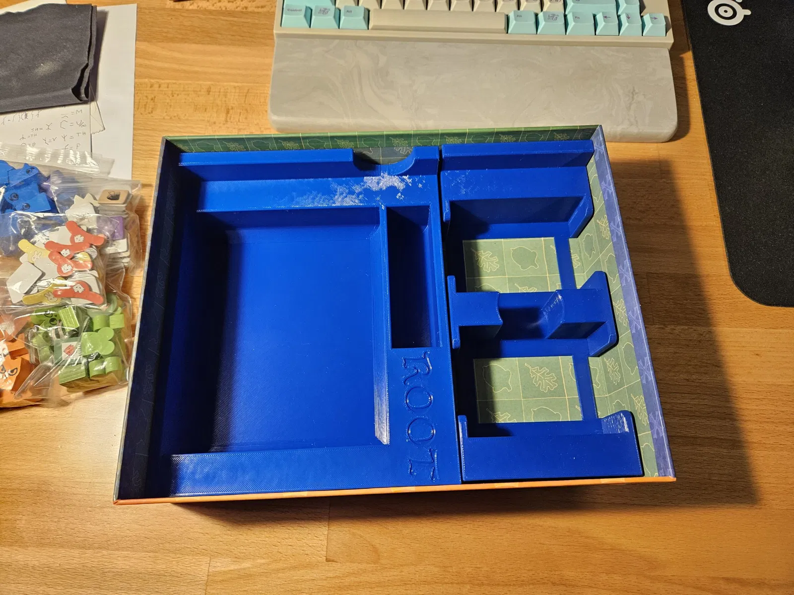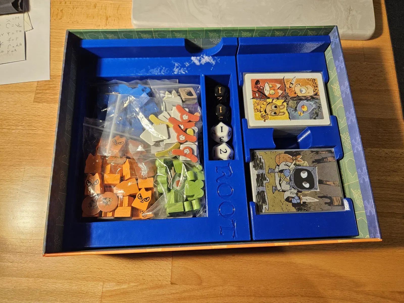 Chèn vacuformed mặc định cho ROOT không vừa với một bộ bài có bao bì, mặc dù hộp có đủ không gian. Tôi đã tạo ra những chèn này để giữ mọi thứ được tổ chức.