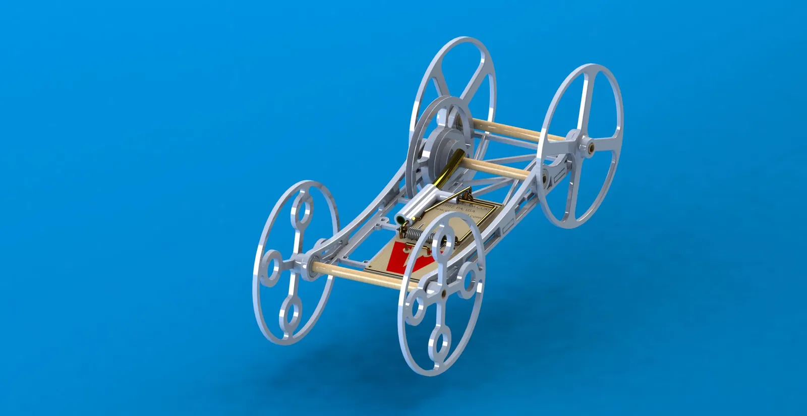 Xe bẫy chuột được thiết kế hơi quá đà, có khả năng di chuyển hơn 100 feet. Cần các bộ phận như đế, tấm hông, bánh xe, ròng rọc, vòng bi, ốc vít, và một bẫy chuột Victor để lắp ráp.