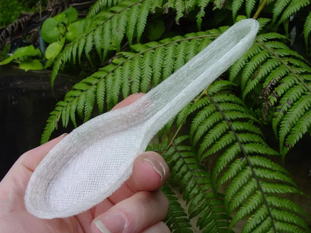 Một cái muỗng cơm được làm như một phần của dự án phục chế nghệ thuật bị mất hoặc hư hỏng với Te Papa ở New Zealand. In với đường kính đầu phun < 0.7mm để có ít nhất 2 lớp. Có thể uốn cong quai muỗng bằng cách hơ nóng.