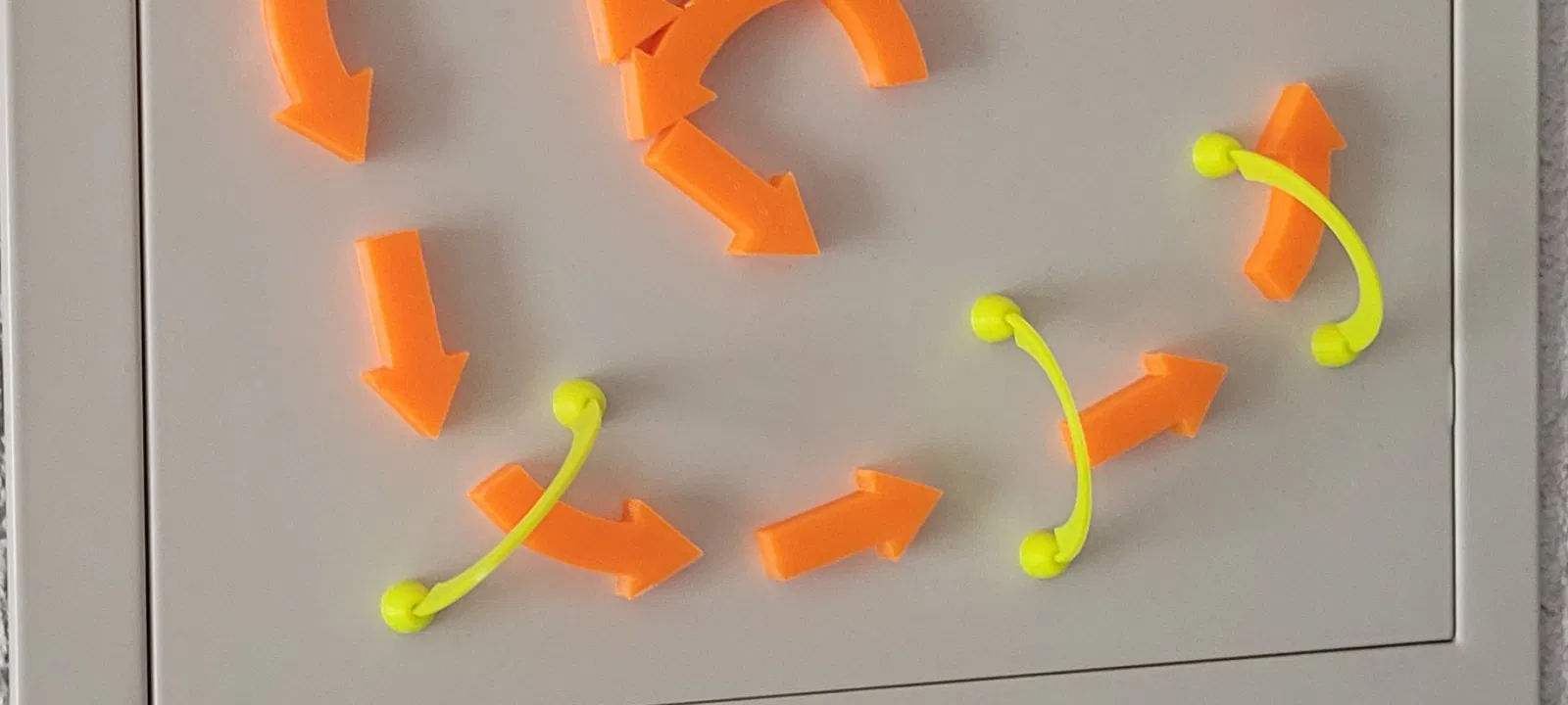Vì chúng tôi thường xuyên xây dựng các đường đua FPV trong vườn, tôi đã thiết kế các cổng và mũi tên chỉ hướng để minh họa đường đua trên một bảng từ tính.