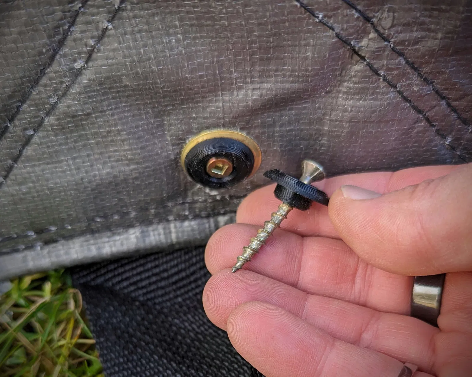 Tui cần cách để cố định bạt rạp của tui lại mà không cần đục lỗ trên đó. Cố định qua mấy cái khoen (grommet) có vẻ là ý hay đó, nhưng đầu vít lại hơi nhỏ. Nên tui thiết kế mấy cái vòng đệm bậc thang (stepped washer) này để luồn qua và cố định mấy cái khoen đó. Mấy cái này xài ổn áp lắm luôn á, nên tui chia sẻ cho mọi người cùng xài thử.
