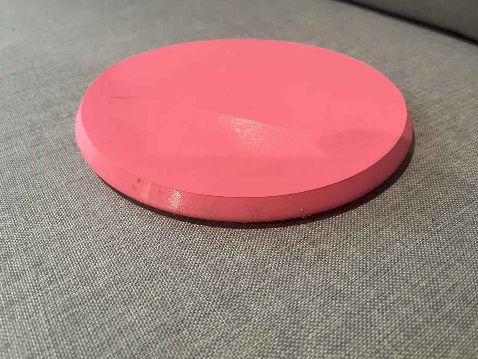 Nó có thể vừa với khay in thông thường ở kích thước đầy đủ và không cần bất kỳ bộ phận hỗ trợ hay keo dán nào. Tôi đã sử dụng sợi TPU màu hồng tươi của Overture 95A, loại này làm cho chiếc đĩa này gần như không thể phá hủy nhưng lại siêu linh hoạt. Độ lượn rất ít nhưng tốc độ thấp và độ bay cũng thấp. Đây là lần đầu tiên tôi thử in đĩa và cũng là lần đầu tiên dùng sợi TPU nên tôi vẫn đang tinh chỉnh các phần in vồng (do đó mặt đĩa được làm phẳng cố ý, không có phần in vồng, v.v.).