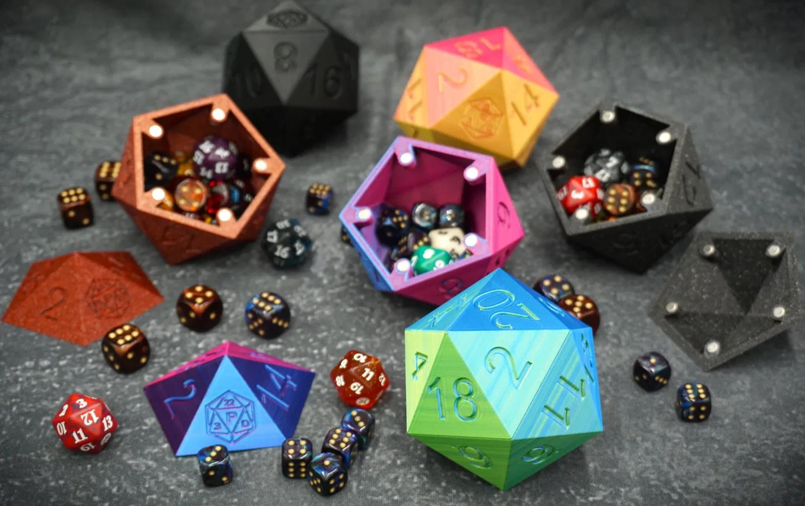 Hộp đựng xúc xắc D20 có nam châm tích hợp, giúp đóng mở chắc chắn và trông rất đẹp mắt. Có các phiên bản nam châm 5x5mm, 4mm và 3mm. Mẫu này độc quyền trên club của tác giả.