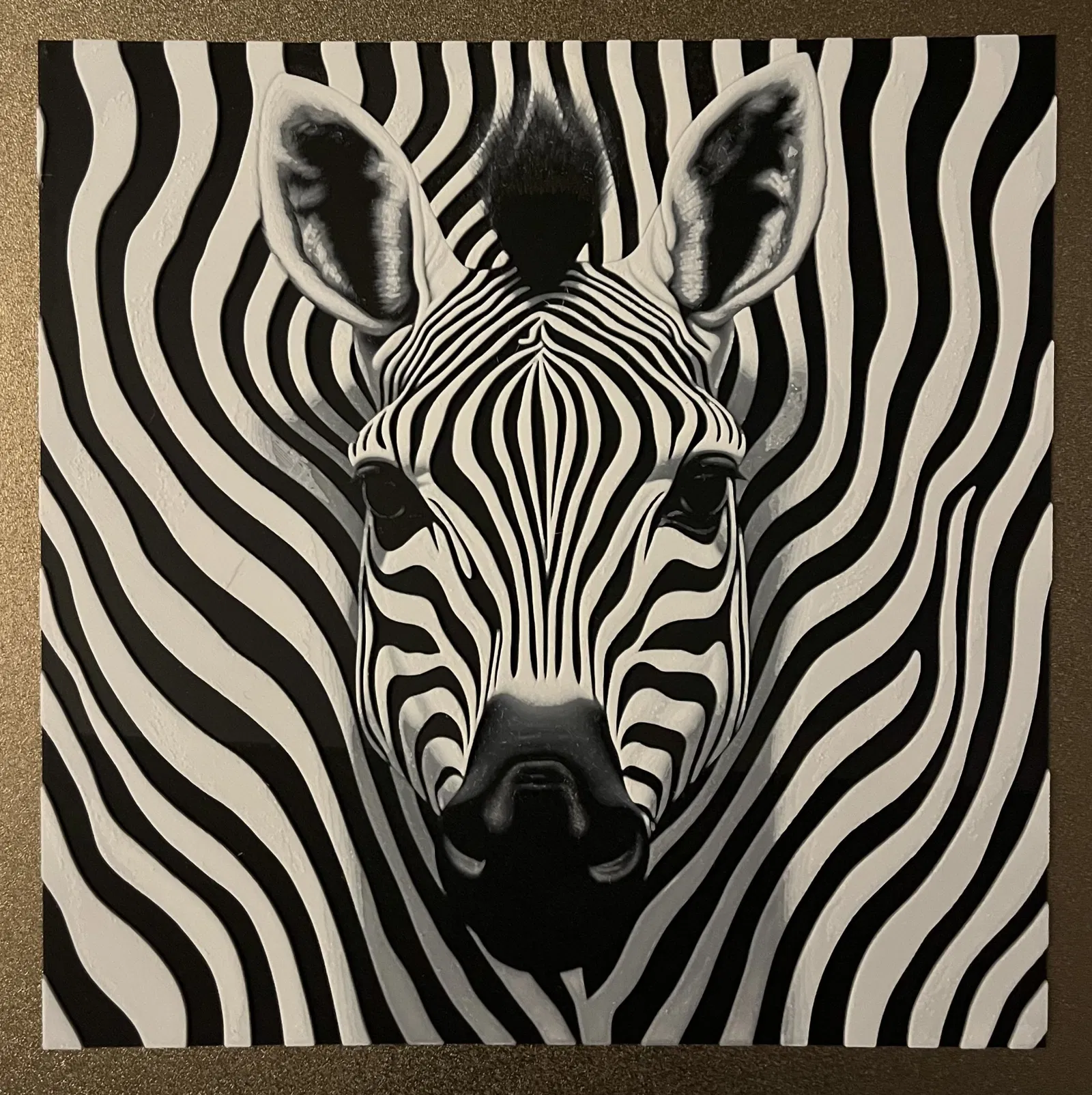 Mô hình 'Filament Painting' 3 màu - Chân dung Ngựa Vằn Op-Art, làm bằng sợi Bambu.