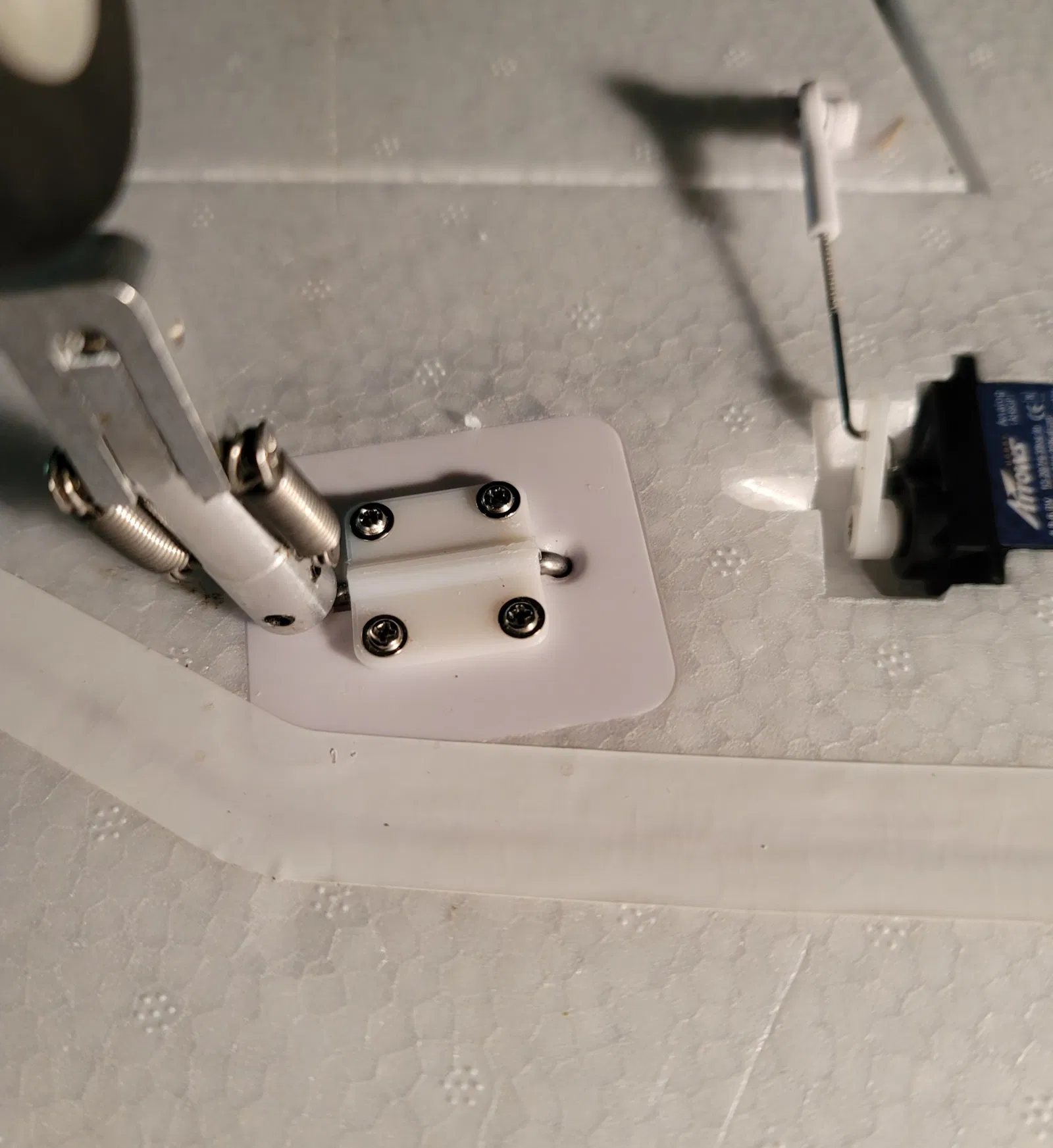 Acts as a hold-down if you happen to break one of the tabs. Simply clean up what was left of the tabs in order to leave a smooth surface. I used servo screws and drilled the holes accordingly. Once the screws are added it seats nicely and holds the rod firmly in place.