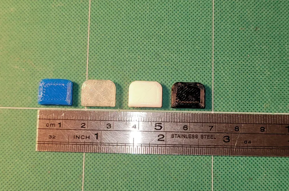 In bằng PLA… 100% infill không cần hỗ trợ. Tui thường in một lô luôn, và vì nó nhỏ nên tui có dùng skirt/brim. Chọn màu bạn thích để in hoặc sơn.