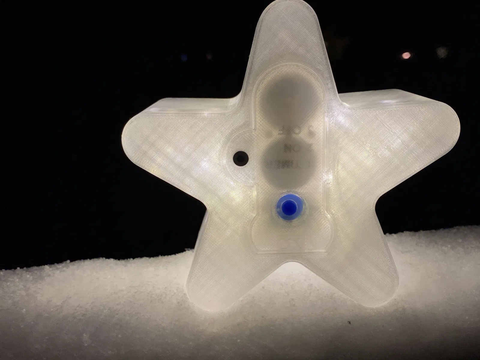 Một ngôi sao nhỏ lấp lánh được làm ra để mang chút ánh sáng vào mùa tối. Mặt trước của ngôi sao được in theo kiểu nhìn như bị đóng băng vậy.