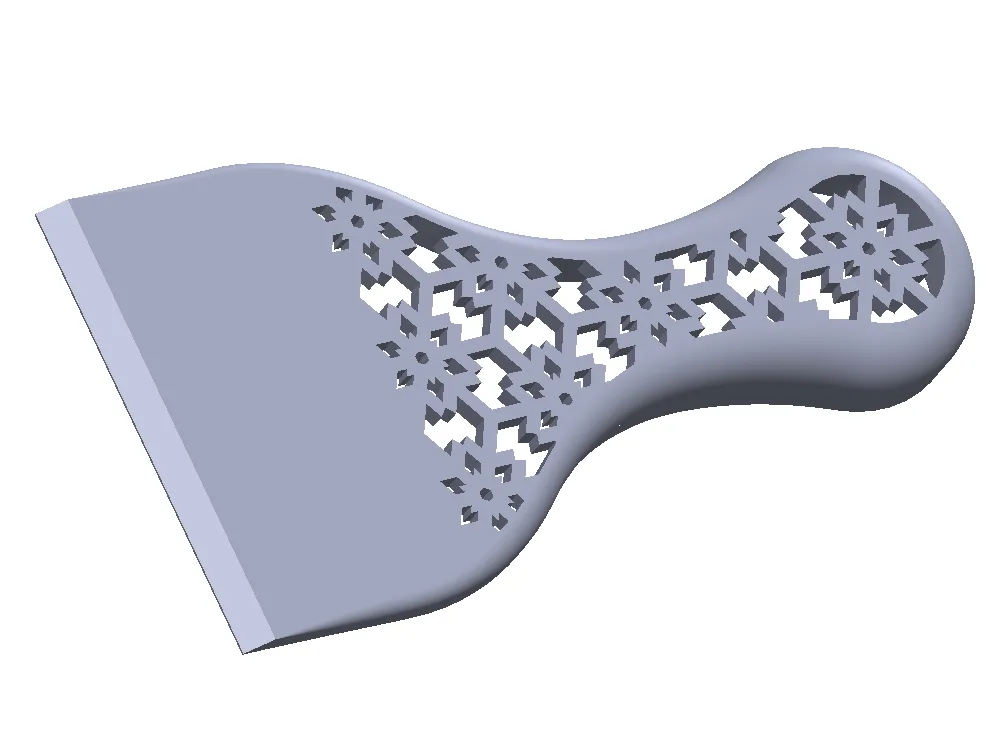 Cái cào băng thông thường nhỏ quá, nên tui làm cái mẫu bự hơn. Với cái hoa văn bông tuyết trên tay cầm.