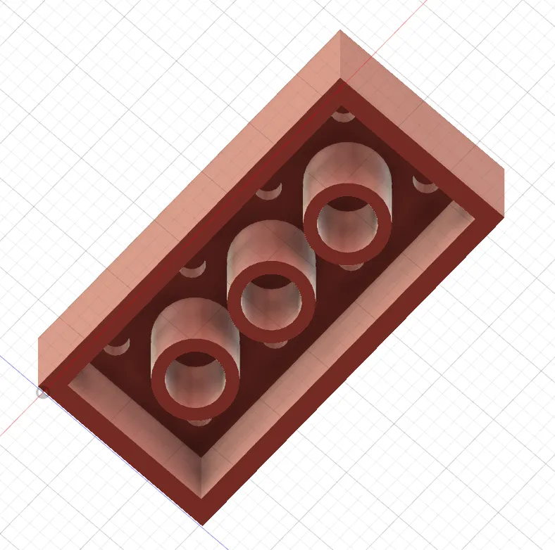 Khối Lego 2x8 màu đỏ, được thiết kế trong Autodesk Fusion 360. Sản phẩm được làm từ nhựa bóng màu đỏ, đảm bảo chất lượng và thẩm mỹ.