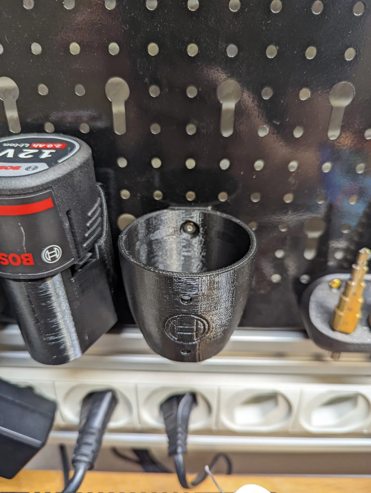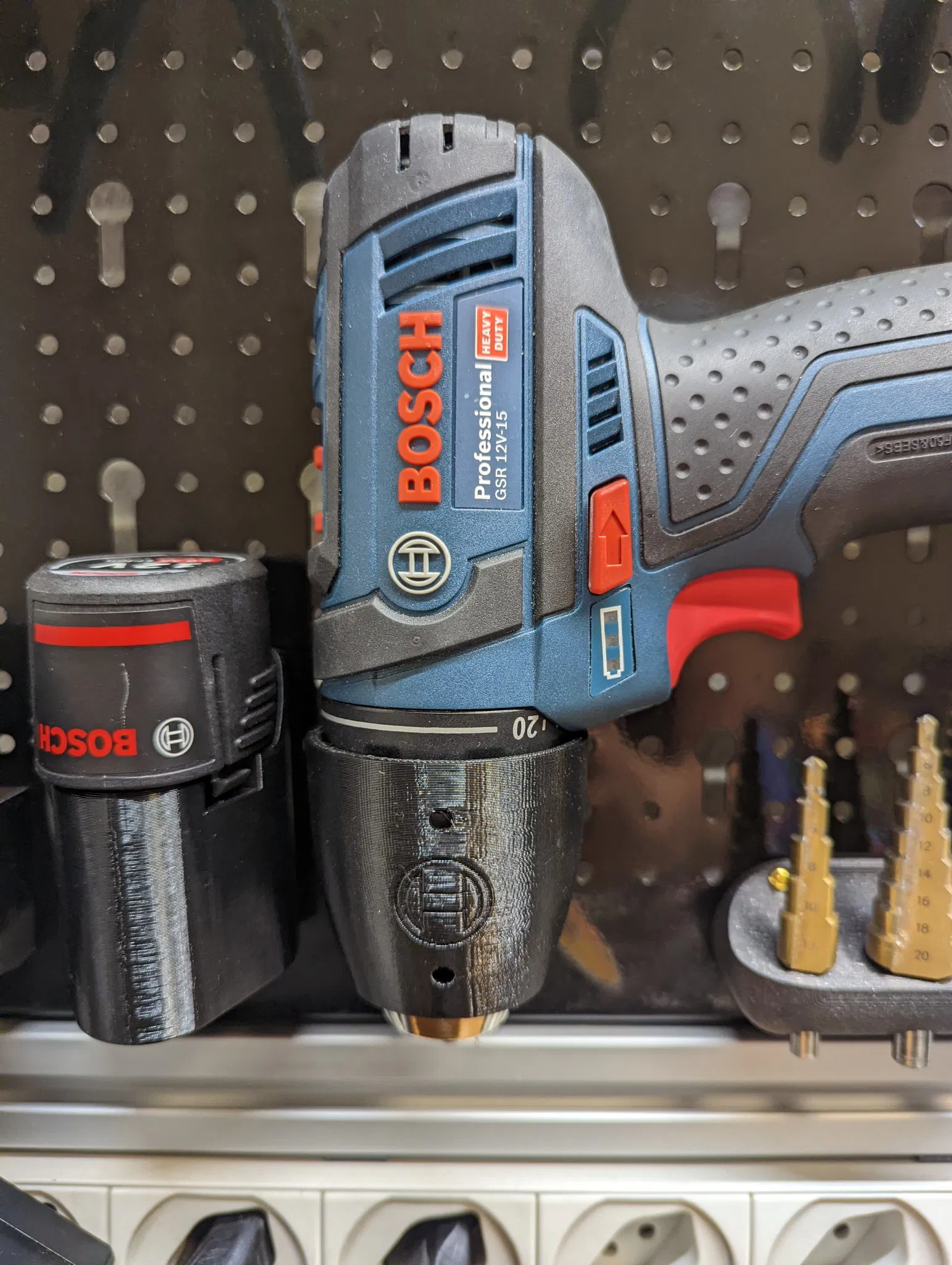 Giá đỡ nhỏ gọn được thiết kế riêng cho máy khoan Bosch GSR 12V-15, giúp bạn cất giữ máy khoan một cách tiện lợi và dễ dàng. Phiên bản cập nhật V1.1 có lỗ giữ tua vít lớn hơn.