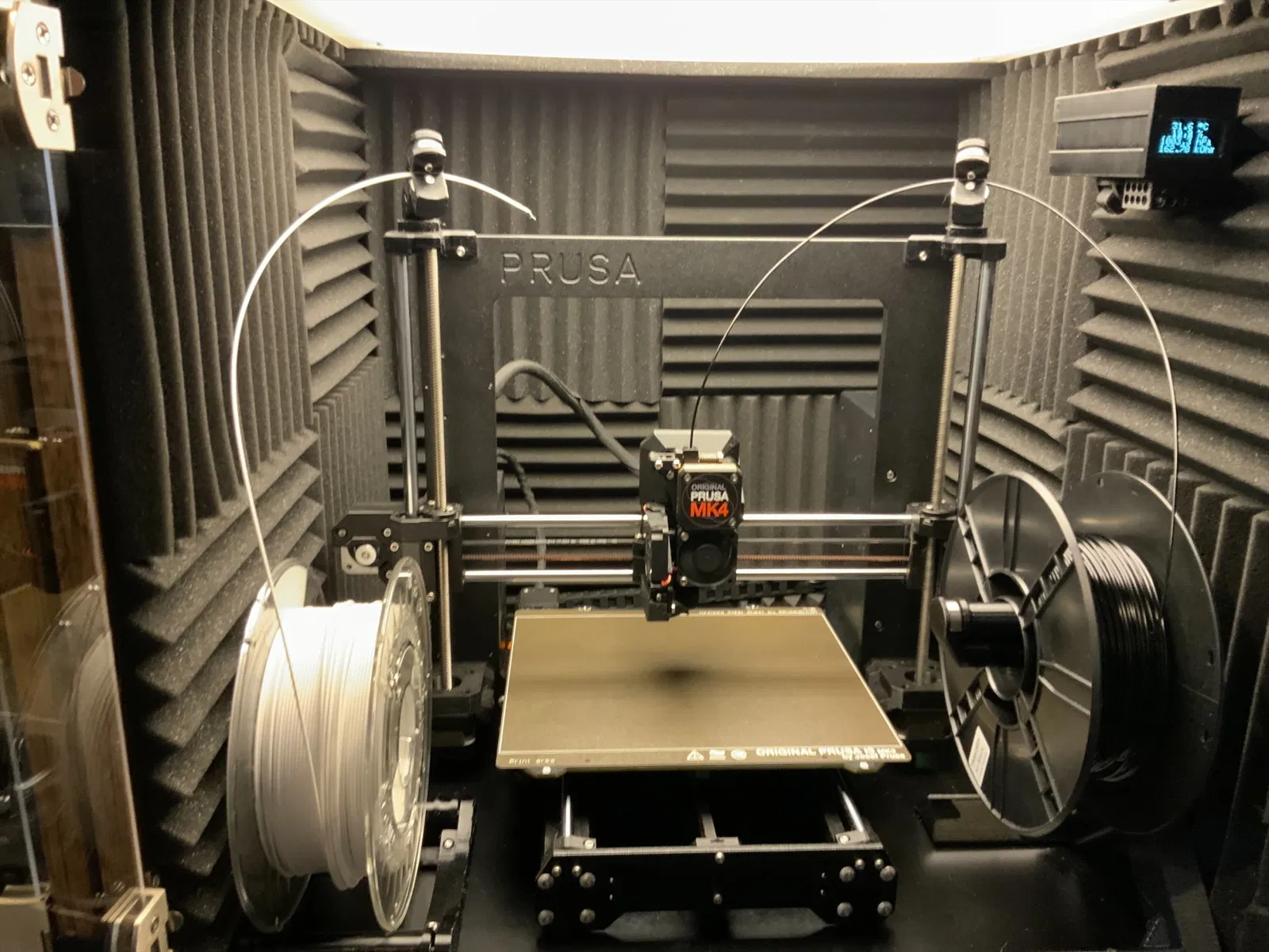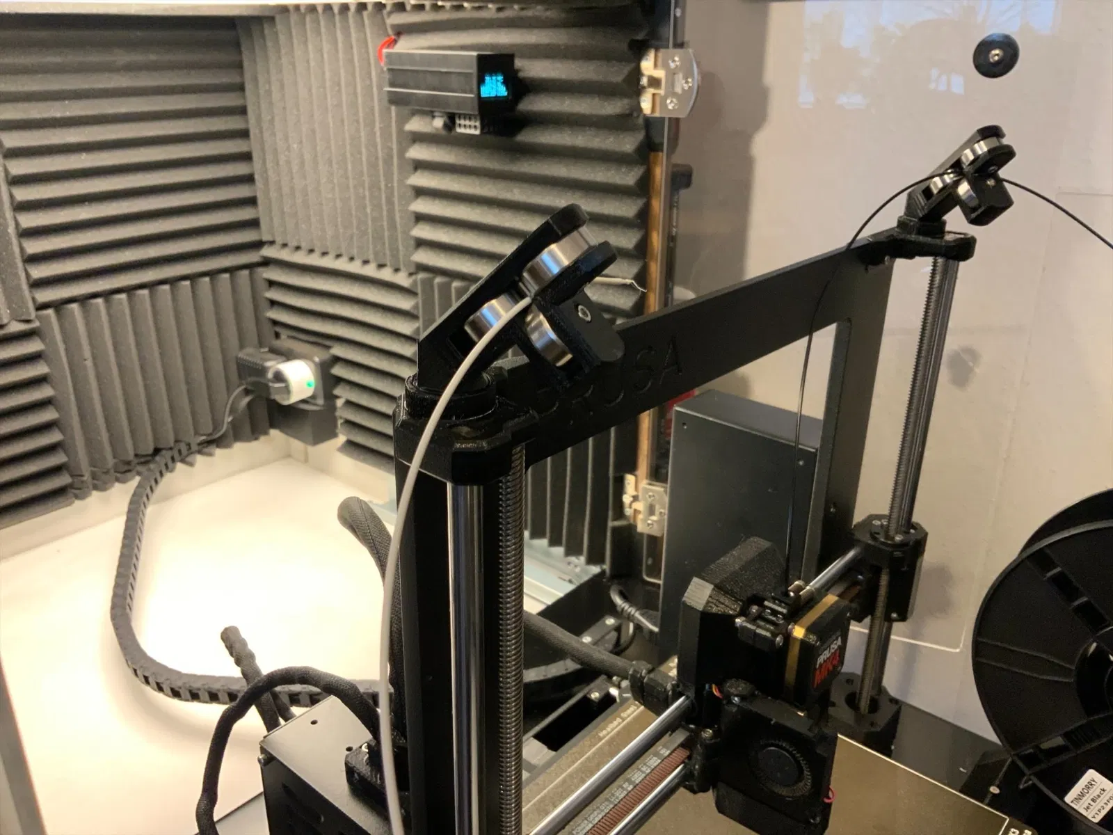 Đây là phiên bản guide dây tóc của tui. Rất lý tưởng nếu cuộn dây tóc nằm ở bên trái hoặc bên phải máy in. Nó được gắn vào phần Z-top đã được chỉnh sửa của MK4/MK3. Góc này có thể được điều chỉnh vô hạn bằng cách xoay bộ giữ. Ma sát rất thấp từ dây tóc. Khi trục X di chuyển nhanh, dây tóc không bị đẩy lùi nhiều và nằm gọn trên cuộn dây.