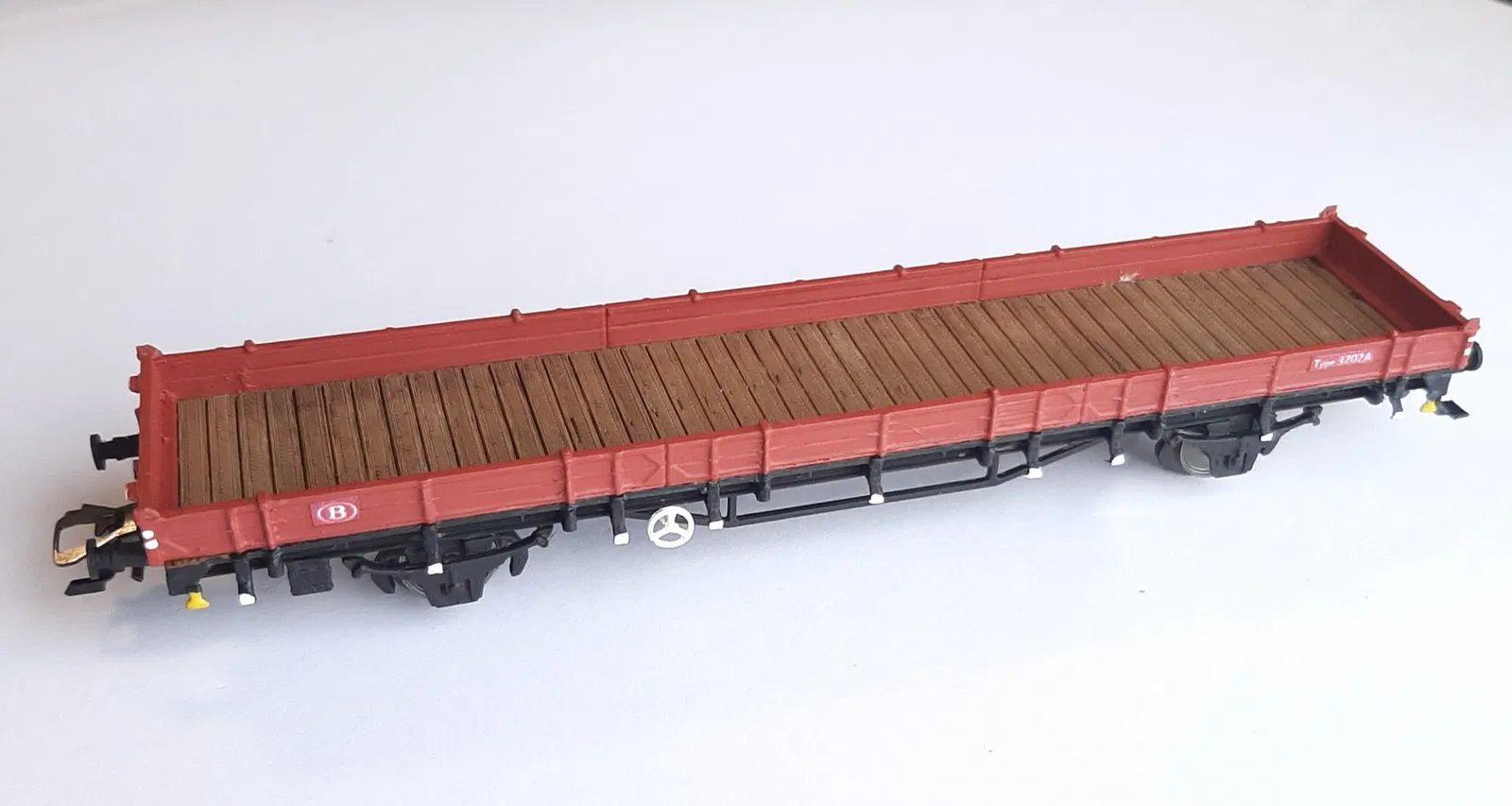 Đây là mô hình tỉ lệ của toa xe chở hàng phẳng NMBS loại 3202A.