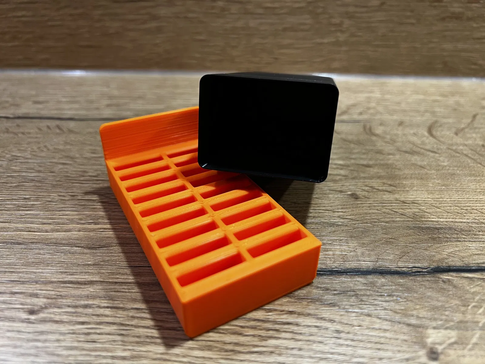 Xin chào các bạn mê in 3D! Hôm nay mình xin giới thiệu hộp đựng game Nintendo Switch có thể chứa được 18 game. Kích thước hộp: Chiều cao 3,6cm, chiều rộng 5,1cm, chiều dài 9,8cm. Mẫu in này được thực hiện trên máy Ender 3 S1 với Sonic Pad.