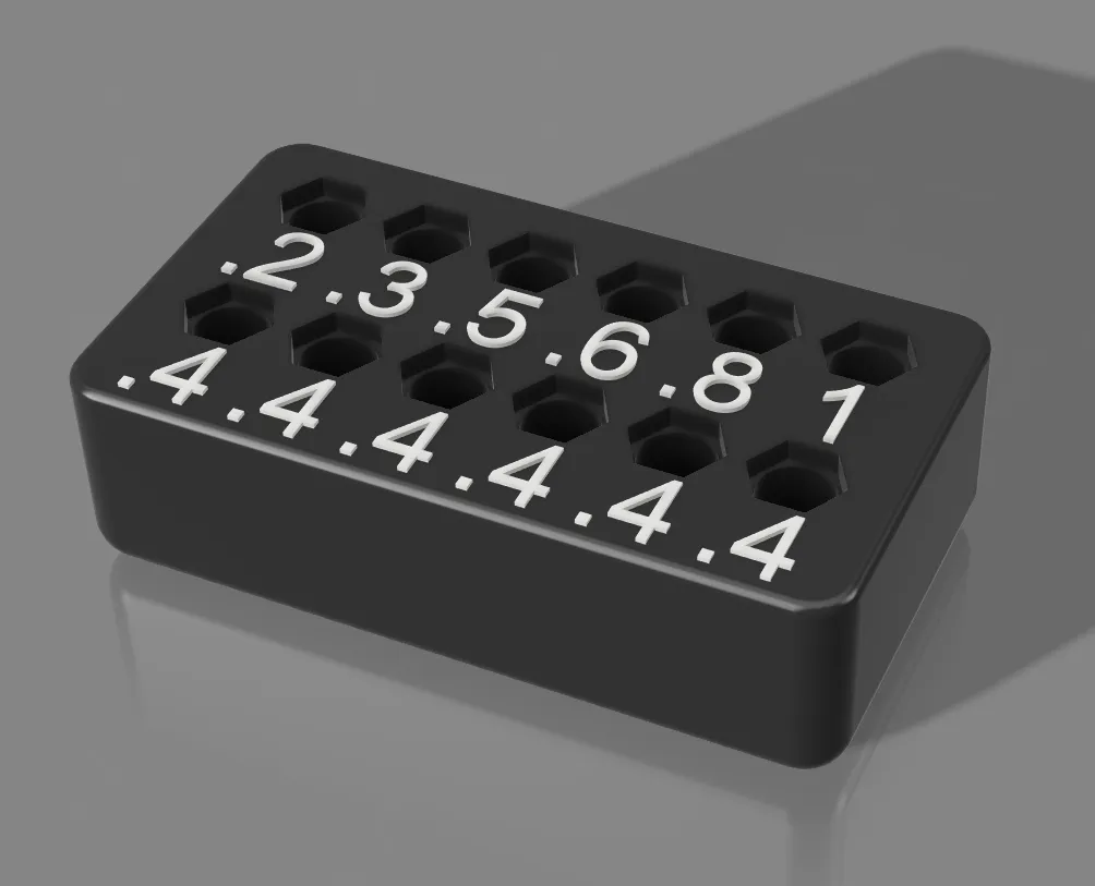 The size markings are raised by 0.4mm so you can switch to another color for the last couple layers to make the text pop. This is not absolutely necessary as you can still read them in single-color prints.