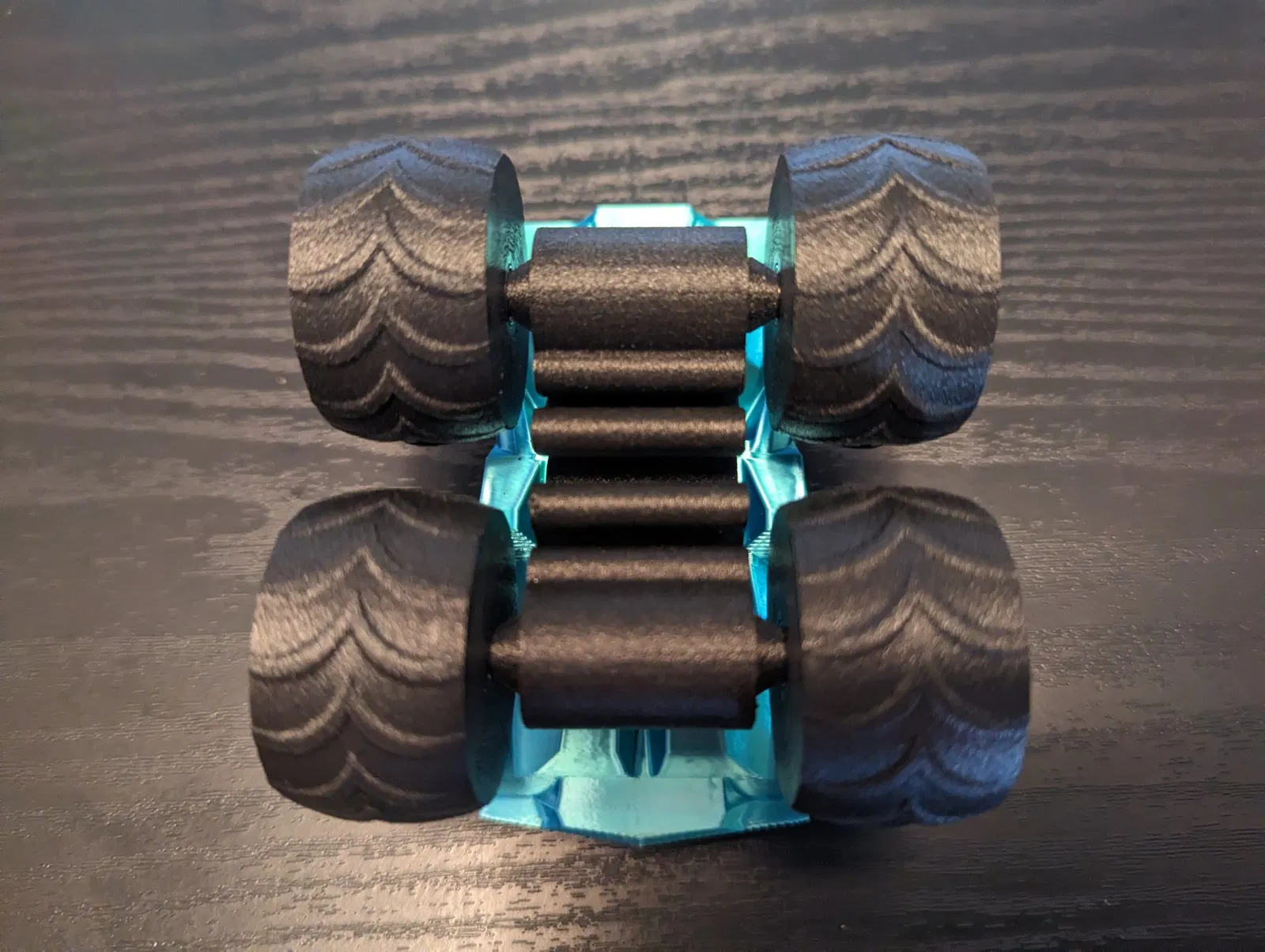 Tôi đã sử dụng cùng một cơ thể nhưng đã thay đổi khung gầm để chấp nhận bu lông M5 và thiết kế lốp mới để chấp nhận vòng bi.