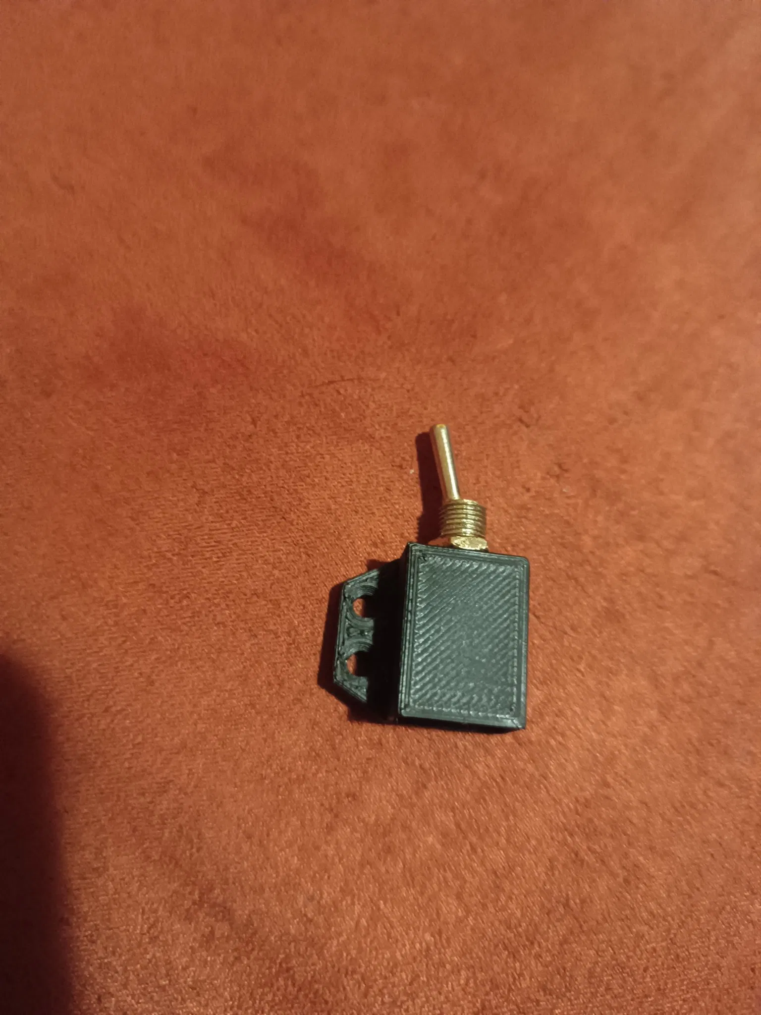 Cái giá đỡ này dùng để giữ công tắc gạt, phù hợp cho mấy bạn hay gắn đèn LED hoặc cần chỗ để công tắc nhỏ gọn. In bằng PLA, tốn khoảng 15 phút thôi à nha.