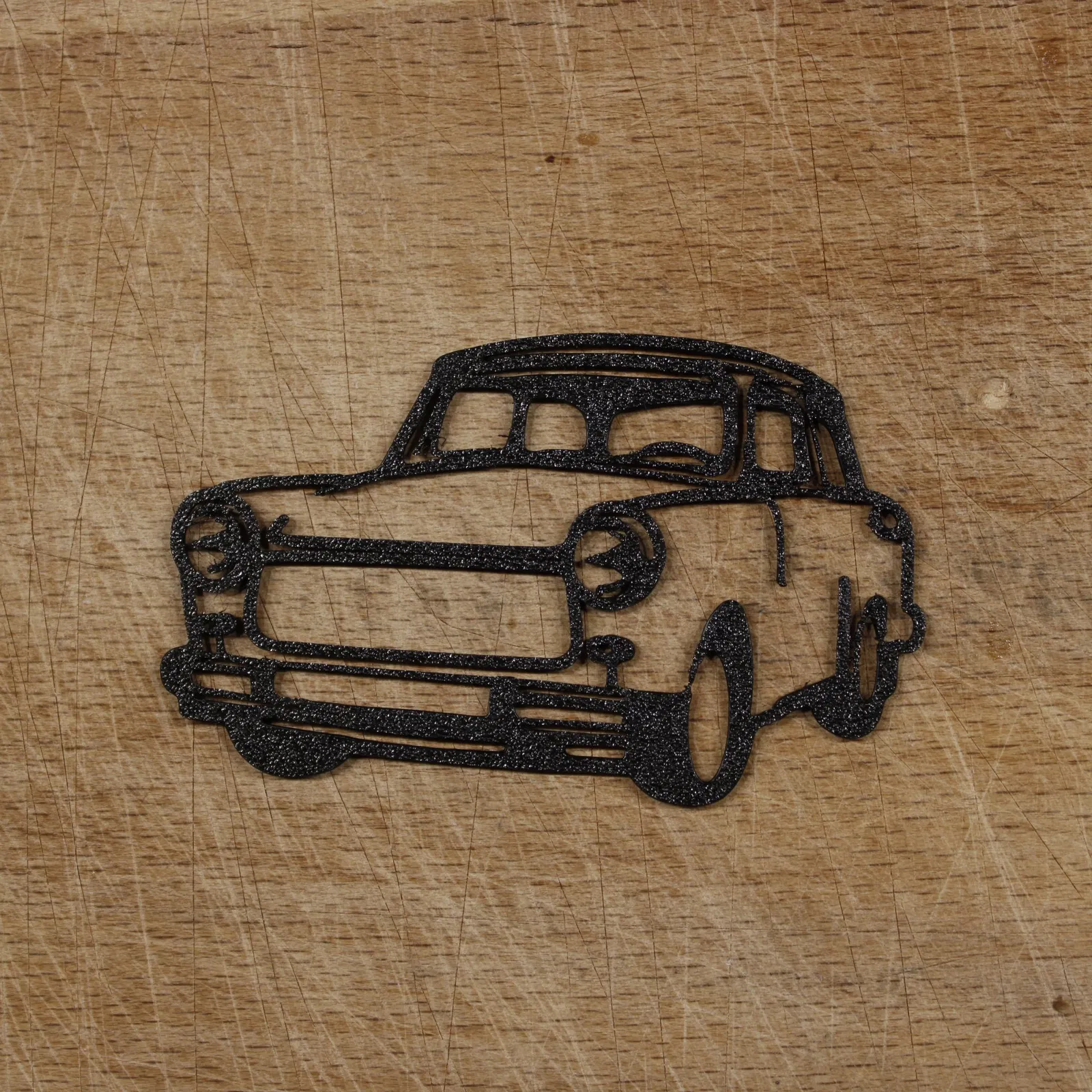 Móc khóa hình chiếc xe Trabant dễ thương, được thiết kế bởi một sinh viên đam mê in 3D. Kích thước lý tưởng là dày 2,5mm, dài 75mm, với đầu phun 0,4mm và chiều cao lớp 0,3mm. Tác giả rất mong nhận được sự ủng hộ theo dõi trên mạng xã hội.