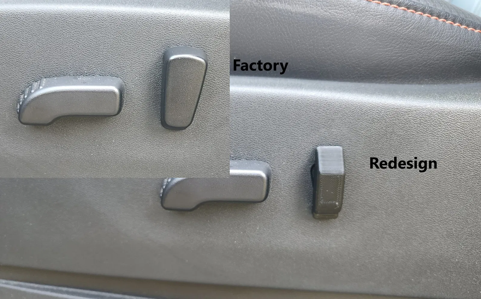 Thiết kế lại nút ghế cho xe Nissan Frontier đời 2022 trở lên, giải quyết vấn đề ghế bị xê dịch khi lên xuống xe. Bản in 3D này giúp cải thiện khoảng trống, mang lại trải nghiệm tốt hơn.