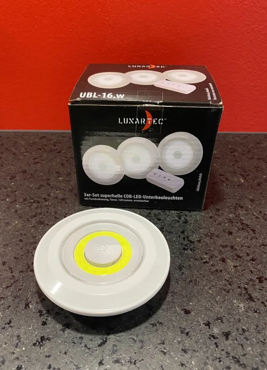 - Đèn LUXARTEC https://www.pearl.ch/fr/3-spots-a-led-cob-120-lm-pour-meubles-de-cuisine-avec-telecommande.html