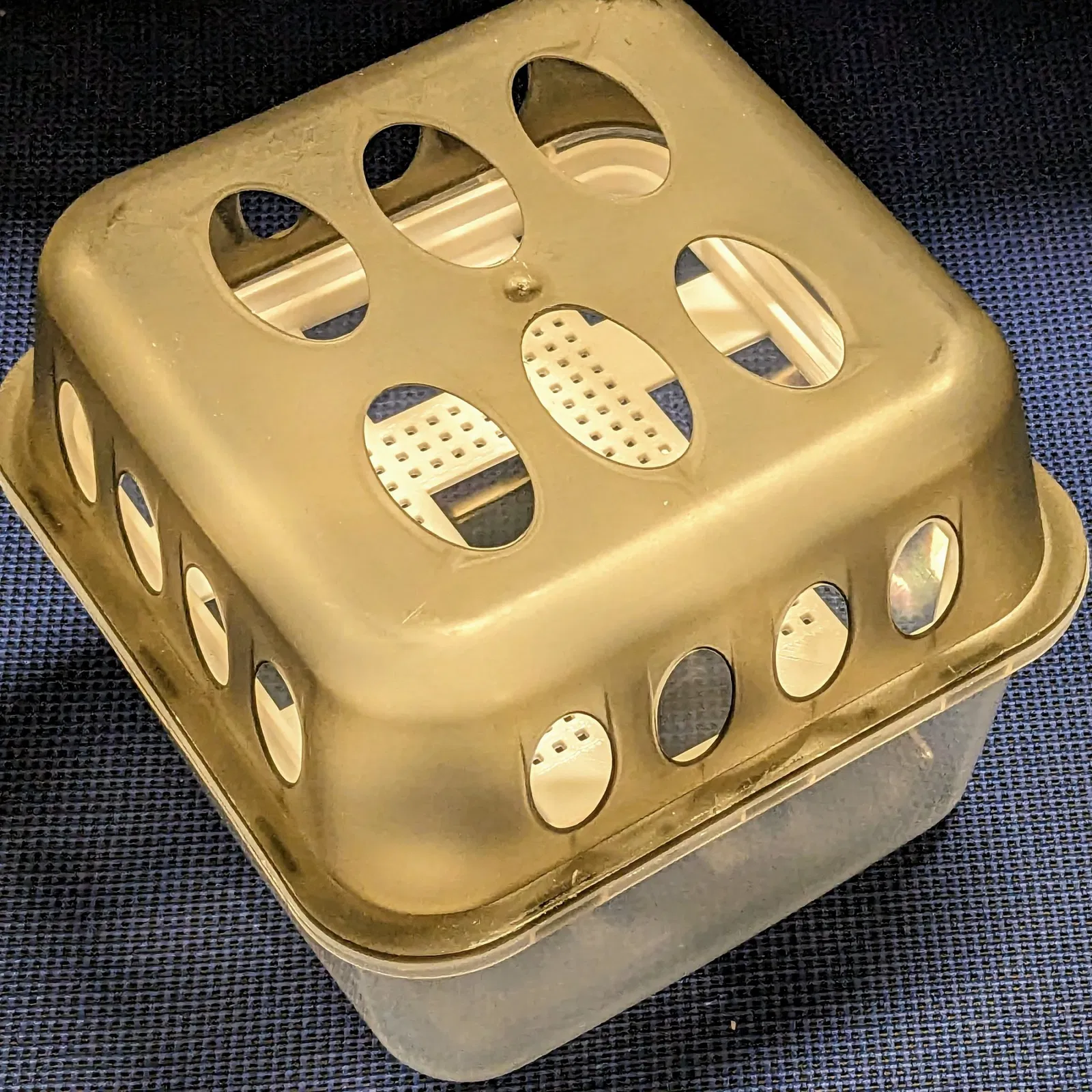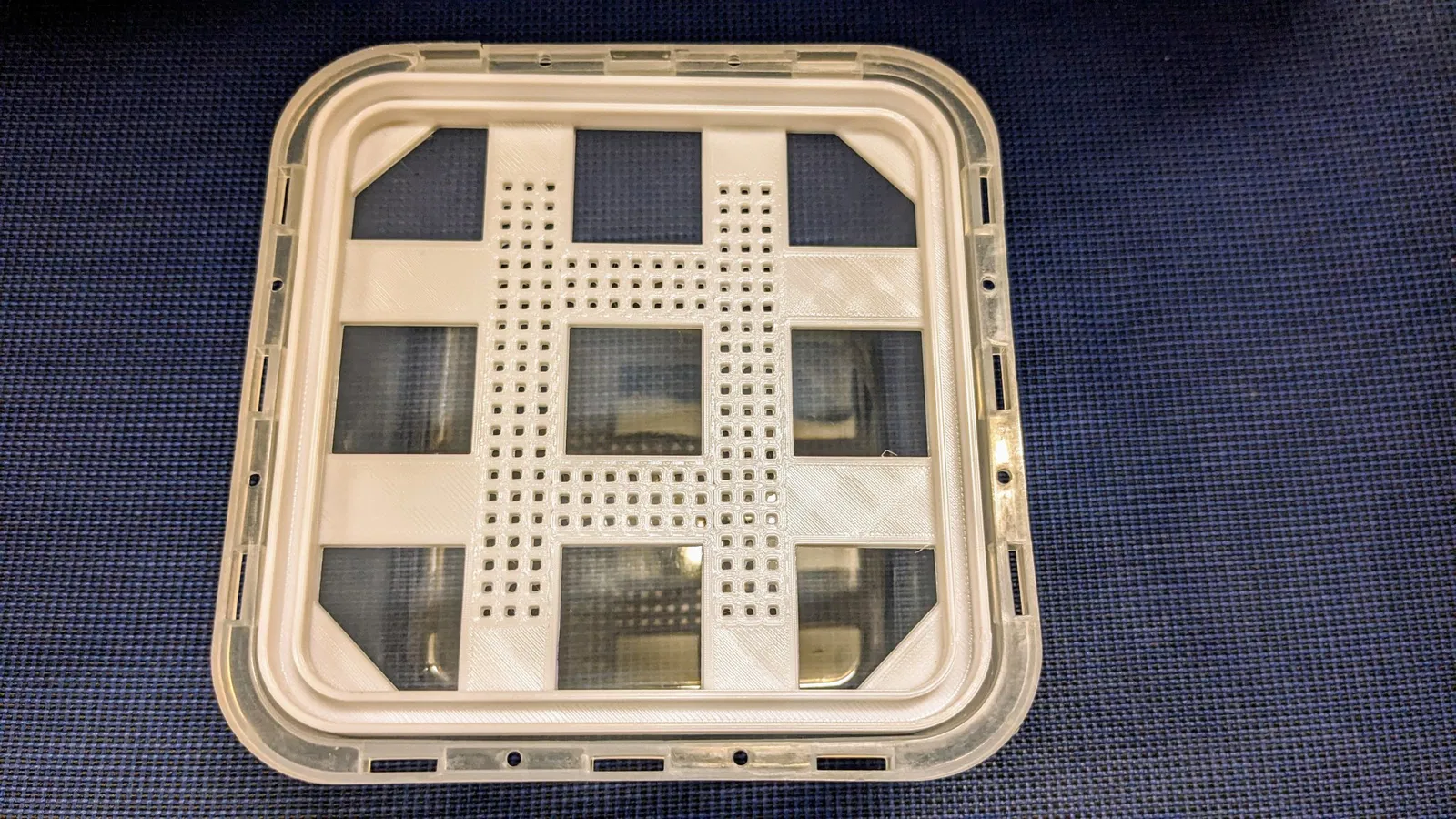 Do có nhiều lỗ nhỏ li ti làm chậm quá trình slicing và in ấn, nên tôi đã thêm một lỗ lớn hơn ở giữa. Cuối cùng, túi hút ẩm chỉ cần nằm gọn trên đó mà không bị rơi xuống.
