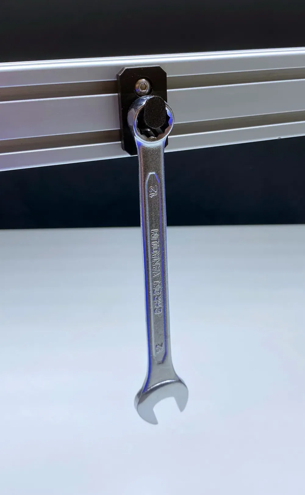 Móc đa năng MT-SYSTEM đế 20mm, lý tưởng để giữ cờ lê, kìm nhỏ và các vật dụng khác có lỗ. Móc được bắt vít vào tấm đế bằng vít M4. Có thể in bằng PLA/PETG, khuyến nghị PETG cho bộ phận chịu lực nặng.