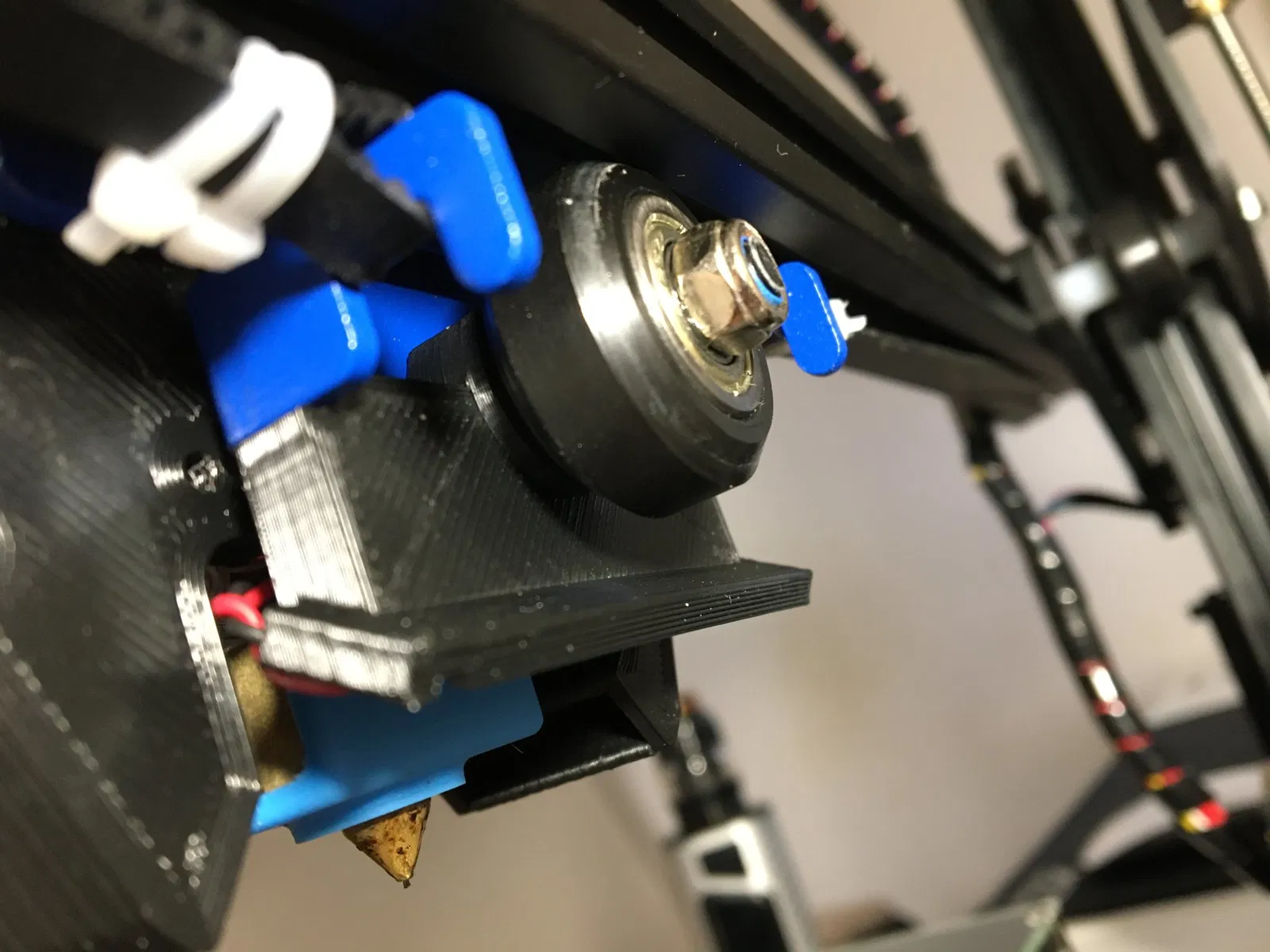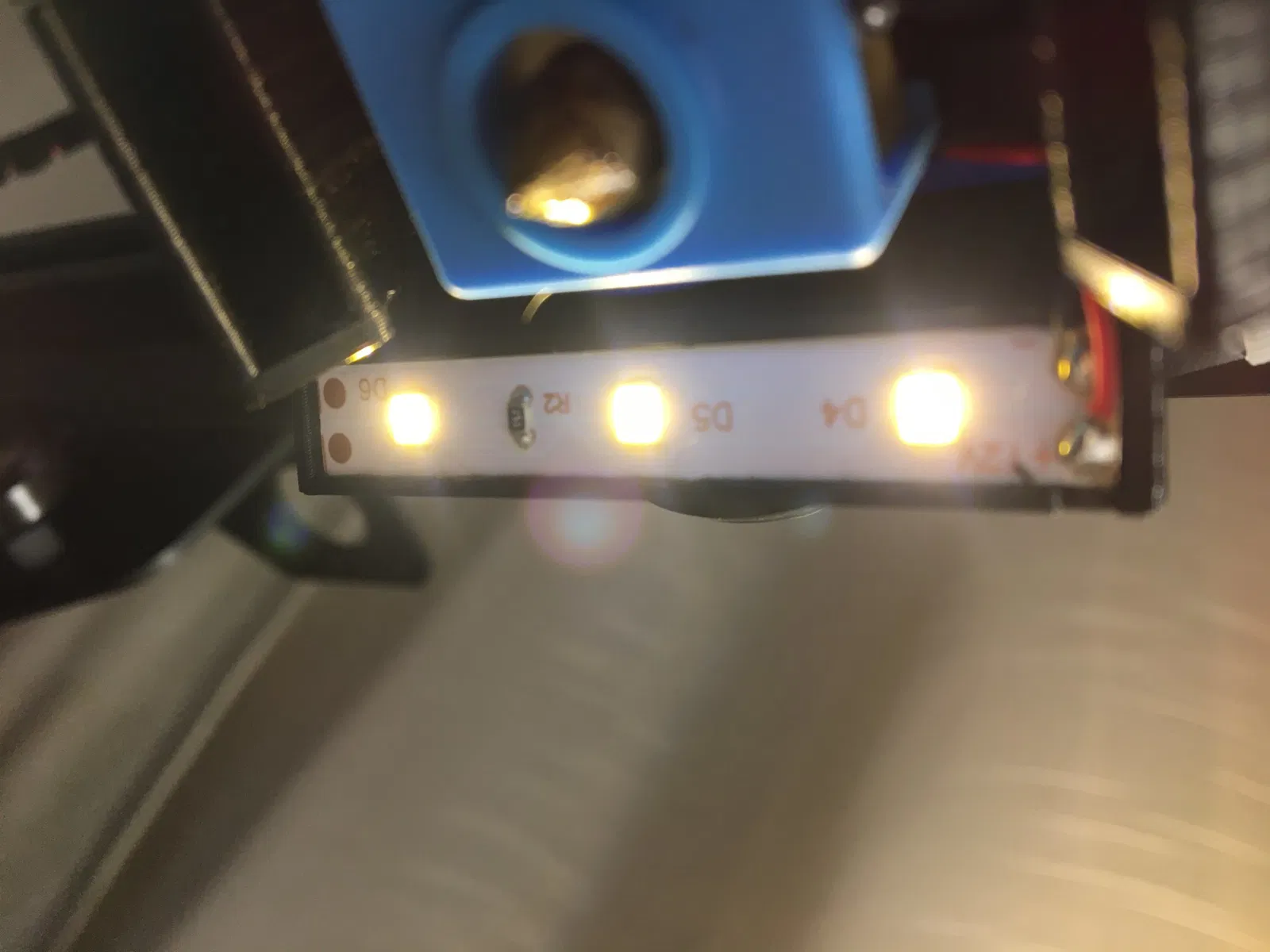 Không cần các phụ kiện cho nền tảng, giá đỡ chỉ cần kẹp vào ống của con lăn dưới. Có thể cần phải điều chỉnh nhẹ các phần nhô lên ở trên bằng một cái dũa do sai số trong kích thước của các đường cong của nền tảng. Đèn LED được dán với mặt dán vào bề mặt và các dây được đưa ra khe ở phần trên. Tôi chỉ hàn vào các dây của hotend thổi chính.