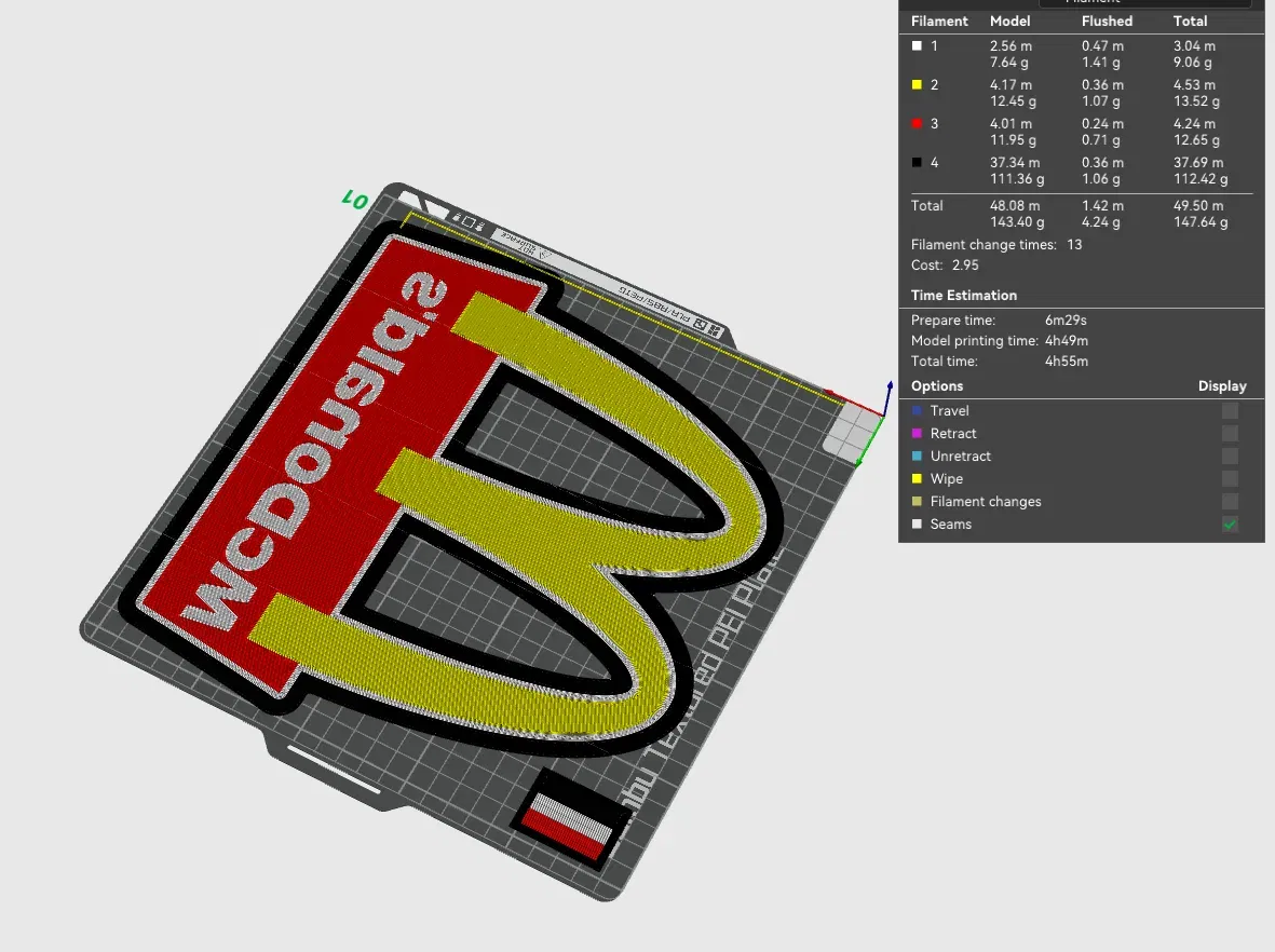 Bambu Studio Settings: I always recommend using the print profile I provided since it has settings with which I've been able to get the best results. If you choose not to here are the main slicer settings I recommend: - preferences (ctrl + P) → activate developer settings → Quality →Advanced → First Layer Flow Ratio: 1.04 - Quality → Wall generator → Arachne - Quality → Wall transitioning threshold angle → 50º - Strength → Advanced → Infill/wall overlap → 20% - Quality → Advanced → Avoid crossing walls - Increasing retraction/reducing temperature can help reducing wisps - Order color printing from lightest to darkest color