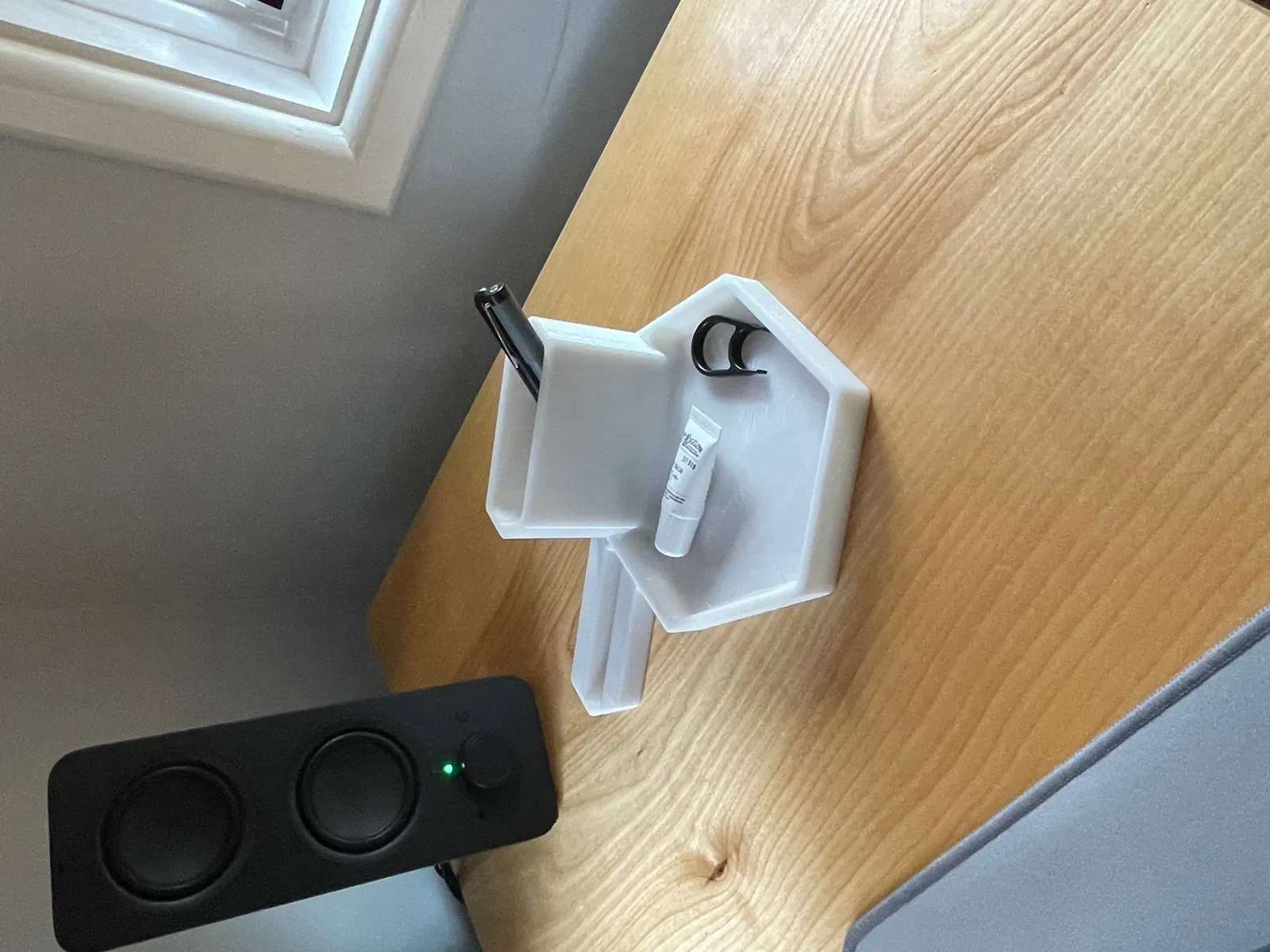 Đây là một bộ tổ chức bàn theo chủ đề hình lục giác, có giá đỡ bút, khay bắt và giá đỡ điện thoại