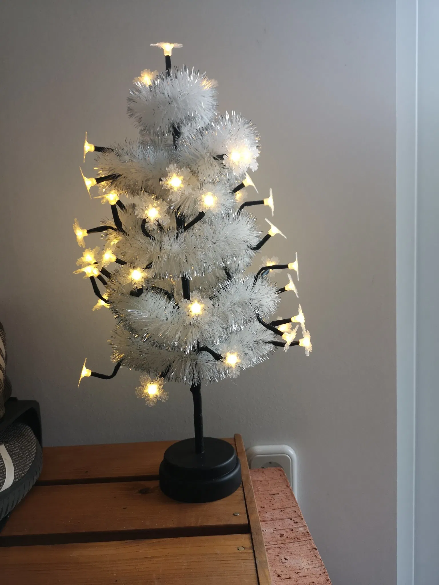 Cái bông tuyết nhỏ này để trang trí cho cây thông mini (cây em mua ở Jysk).