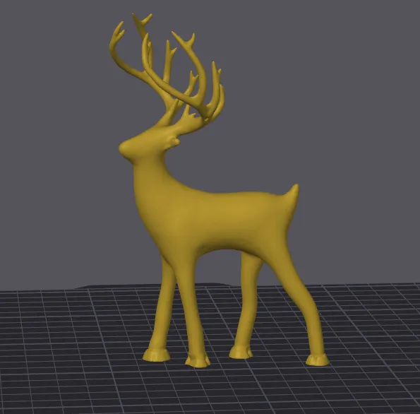Mẫu tượng Nai đặc ruột với phần móng guốc được thêm vào. Khuyến nghị in với 5-10% infill gyroid, custom support cho bụng và ngực. Lưu ý Brim là cần thiết để đảm bảo dính bàn in tốt do móng guốc nhỏ.