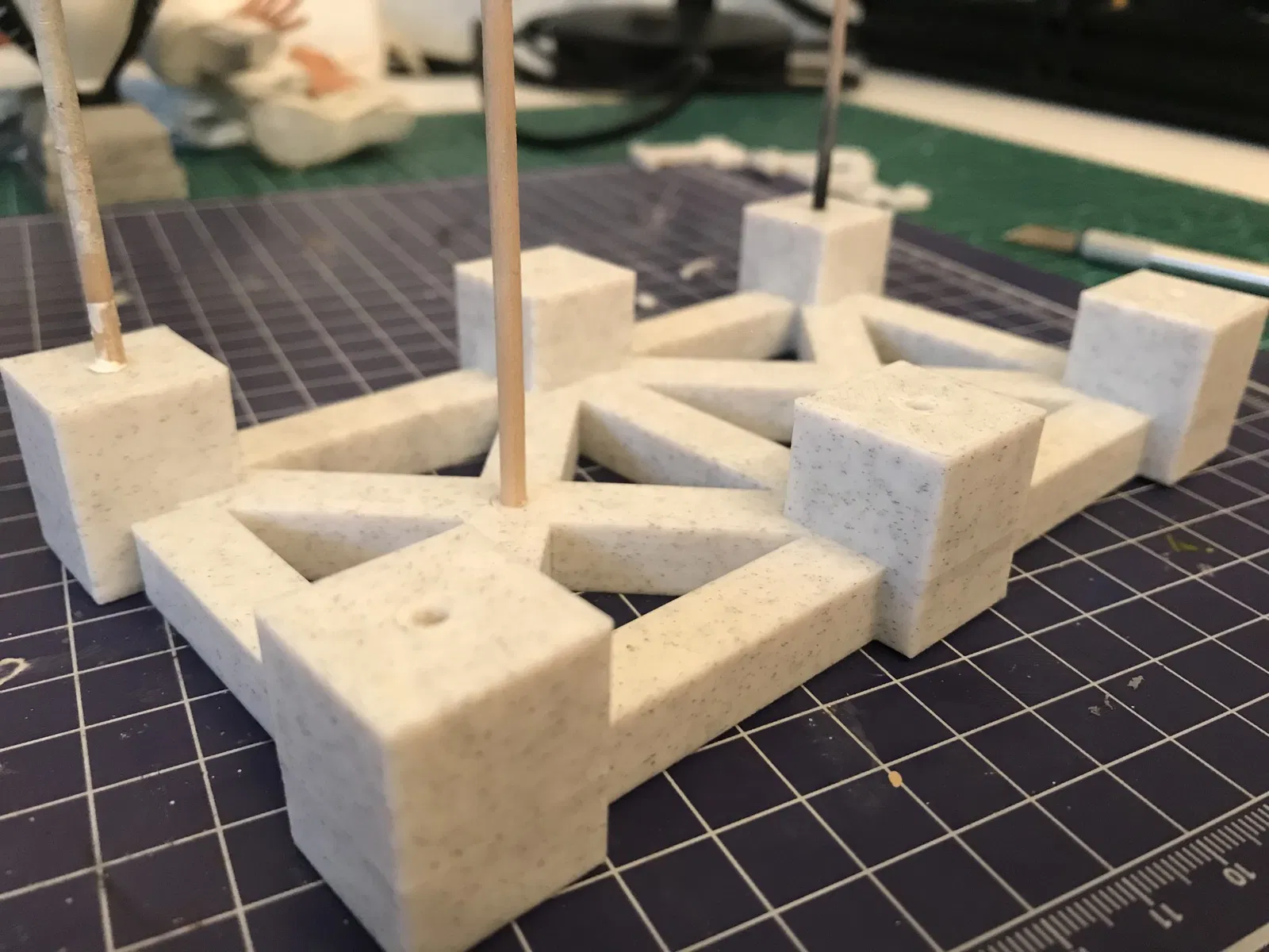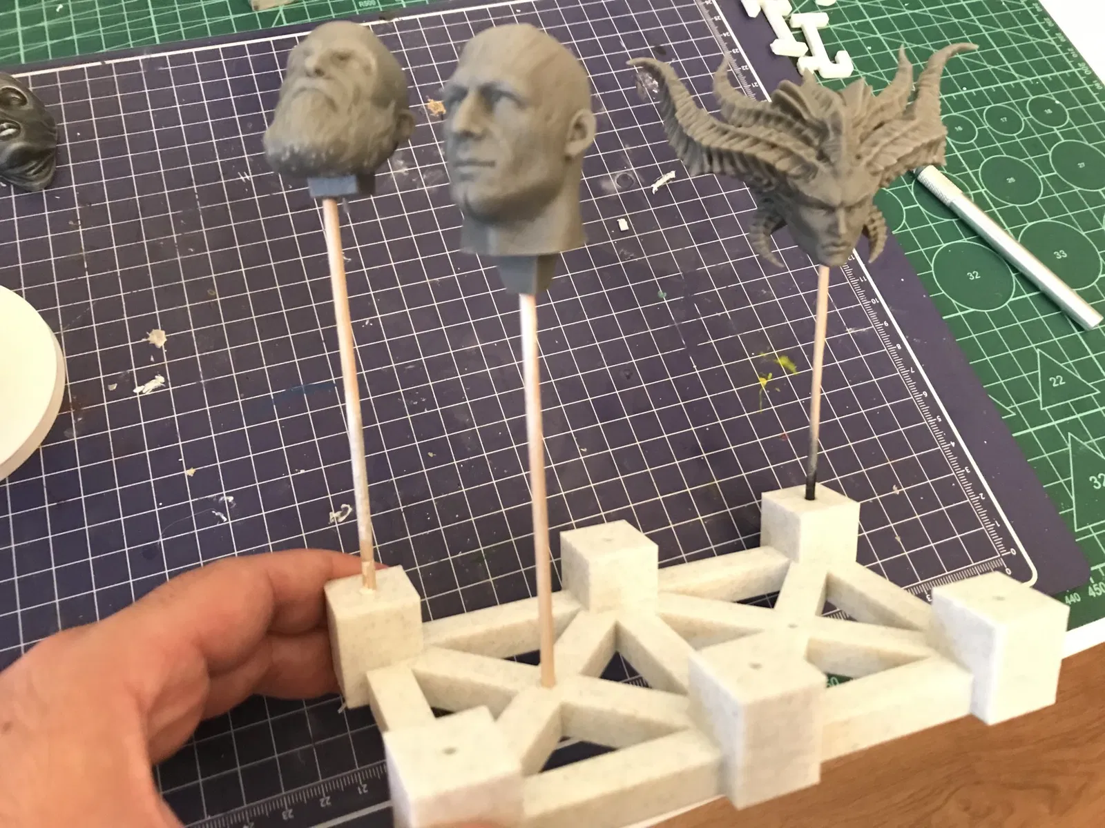 Lỗ trên đế thì khoảng 3.1mm, để gắn mấy cái que 3mm mà tui hay dùng để gắn mấy cái đầu tượng đó.