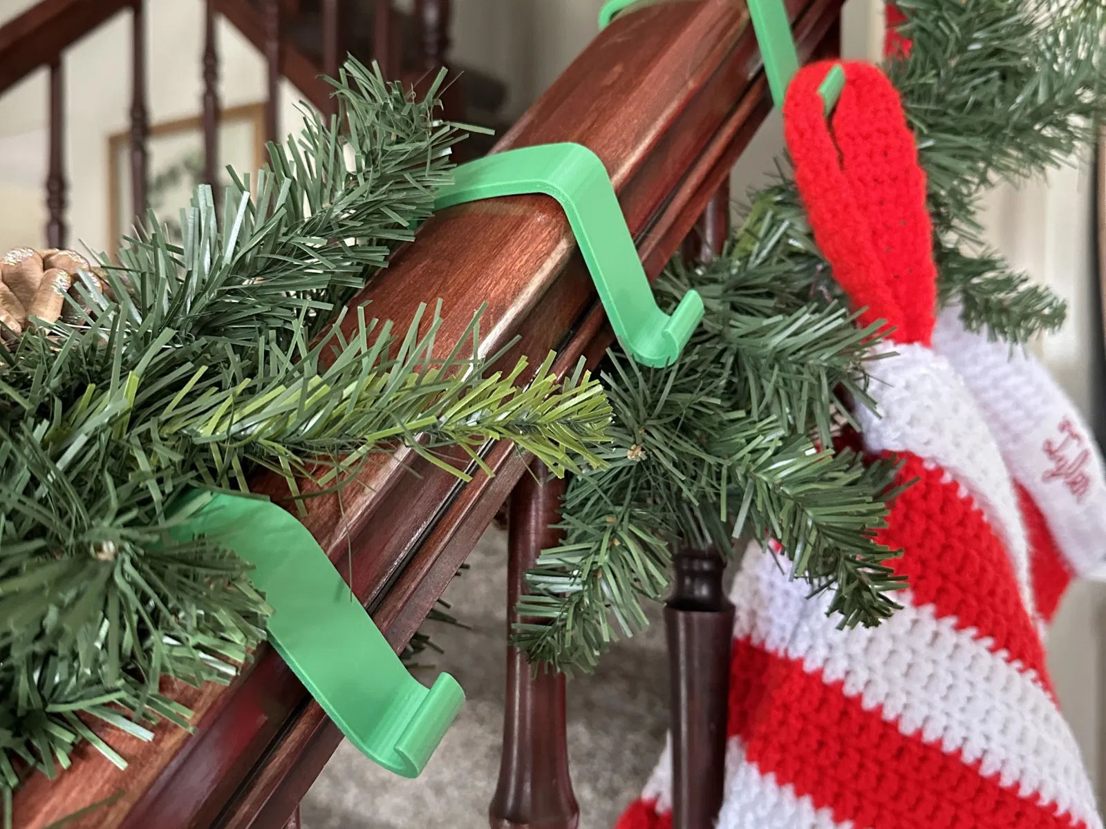 Cần một cái móc để treo vớ lên tay vịn cầu thang? Cái móc này được thiết kế để gắn chắc chắn vào tay vịn, tránh bị tuột xuống. Người dùng cho biết nó hơi sít, có thể cần điều chỉnh kích thước lớn hơn nếu làm lại.