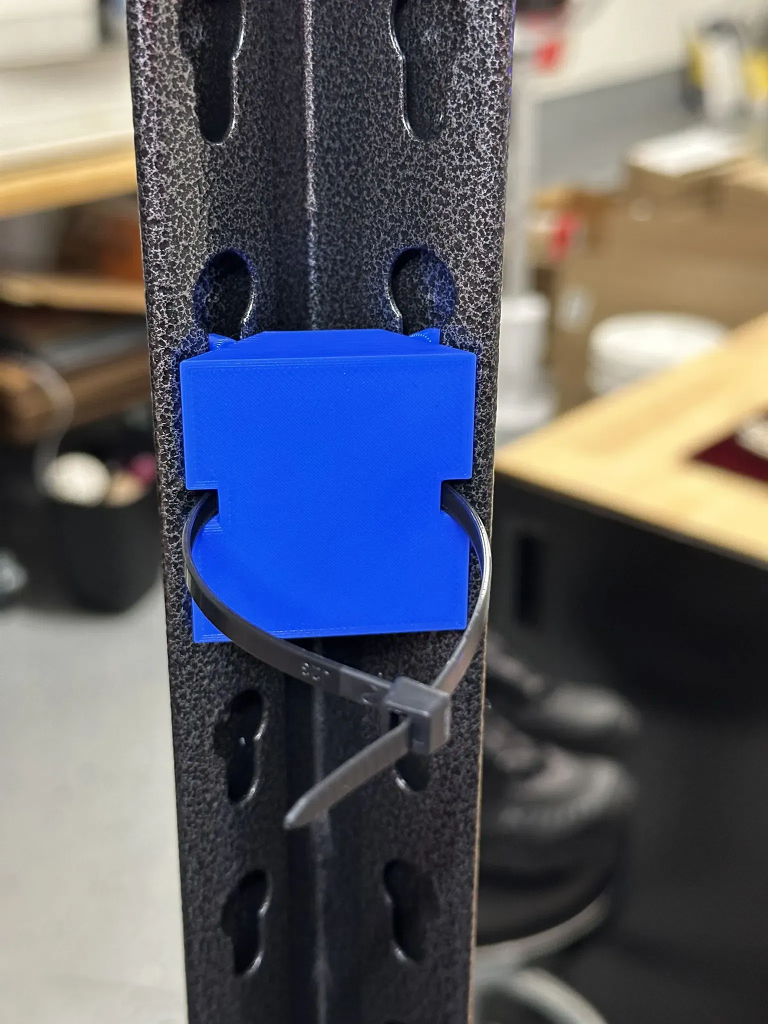 Ke góc này dùng cho kệ thép 5 tầng Whalen (không dùng công nghiệp) mua ở Costco. Có rãnh 6mm để luồn dây rút, thích hợp để gắn ổ cắm điện, camera theo dõi máy in. Cài đặt in: 0.30mm DRAFT, ruột 15%, không cần chống đỡ.