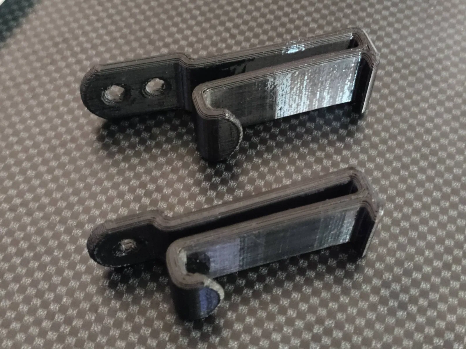 Kỹ thuật đảo ngược một kẹp J-crossbreed, Thêm một bộ giữ ở trên, thu hẹp khoảng cách qua quần, và tối ưu hóa cho in FDM.