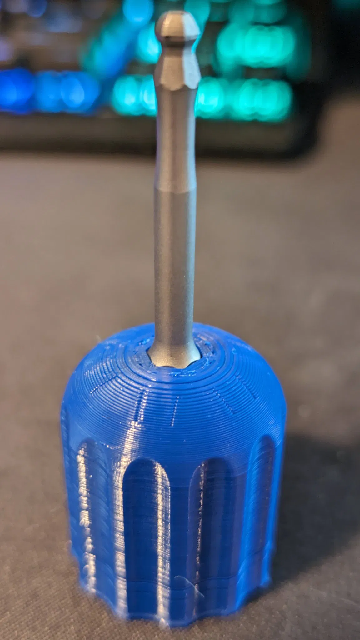 Tua vít/Đầu vặn lục giác được gia cố bằng các khe. Cao 35mm, dễ dàng điều chỉnh trong Fusion 360. Có lỗ nam châm 6x2mm. Đặc biệt, lỗ lục giác 25mm giúp bit vặn sâu, tăng diện tích chịu lực.