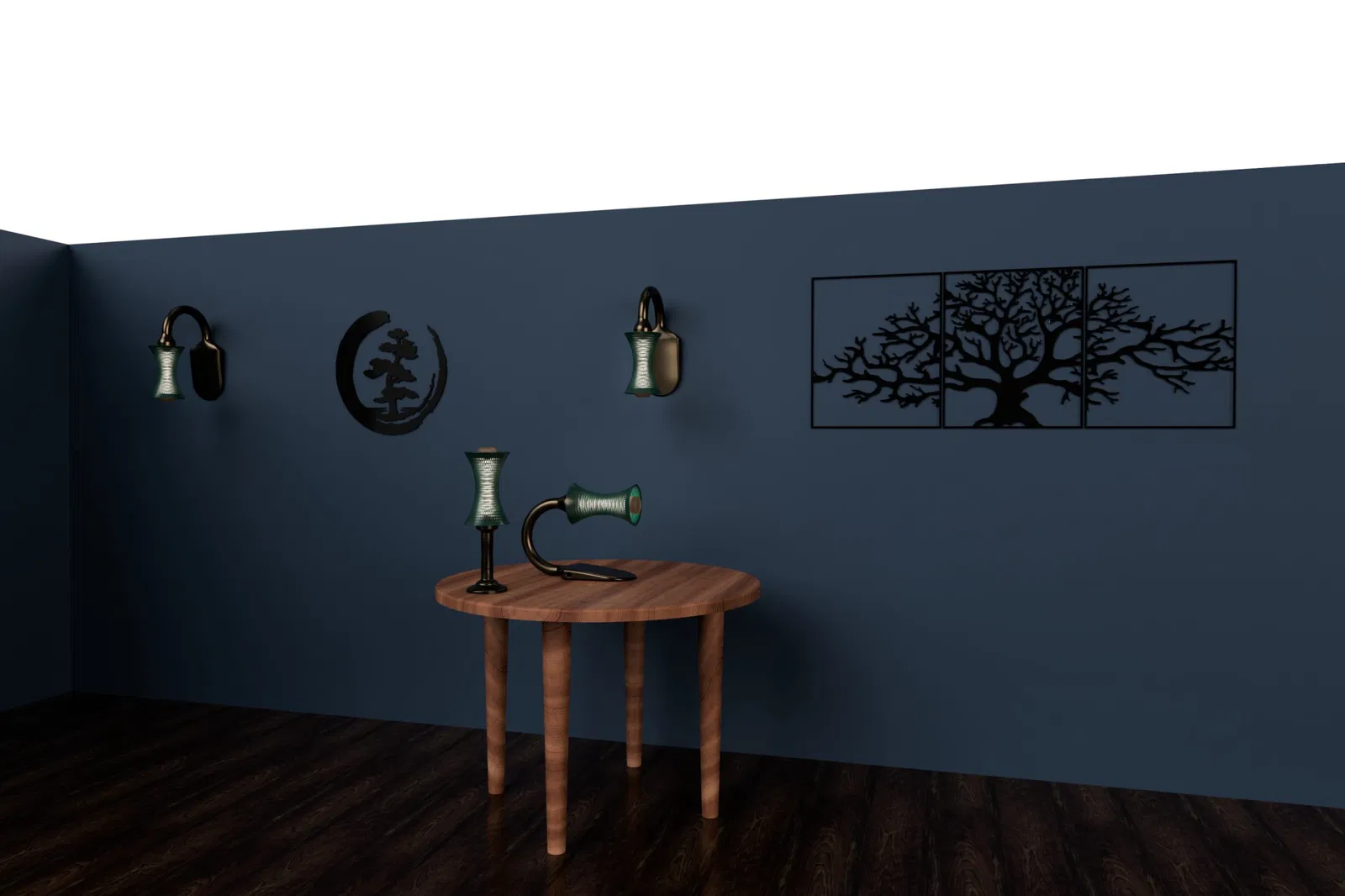 Bộ đèn hiện đại này có thể in với ba kiểu đế khác nhau: không đế, đế thẳng hoặc đế cong (để bàn hoặc treo tường). Sản phẩm này có kênh cáp bên trong và lỗ luồn dây tiện lợi, phù hợp với dải đèn LED dưới 11mm.