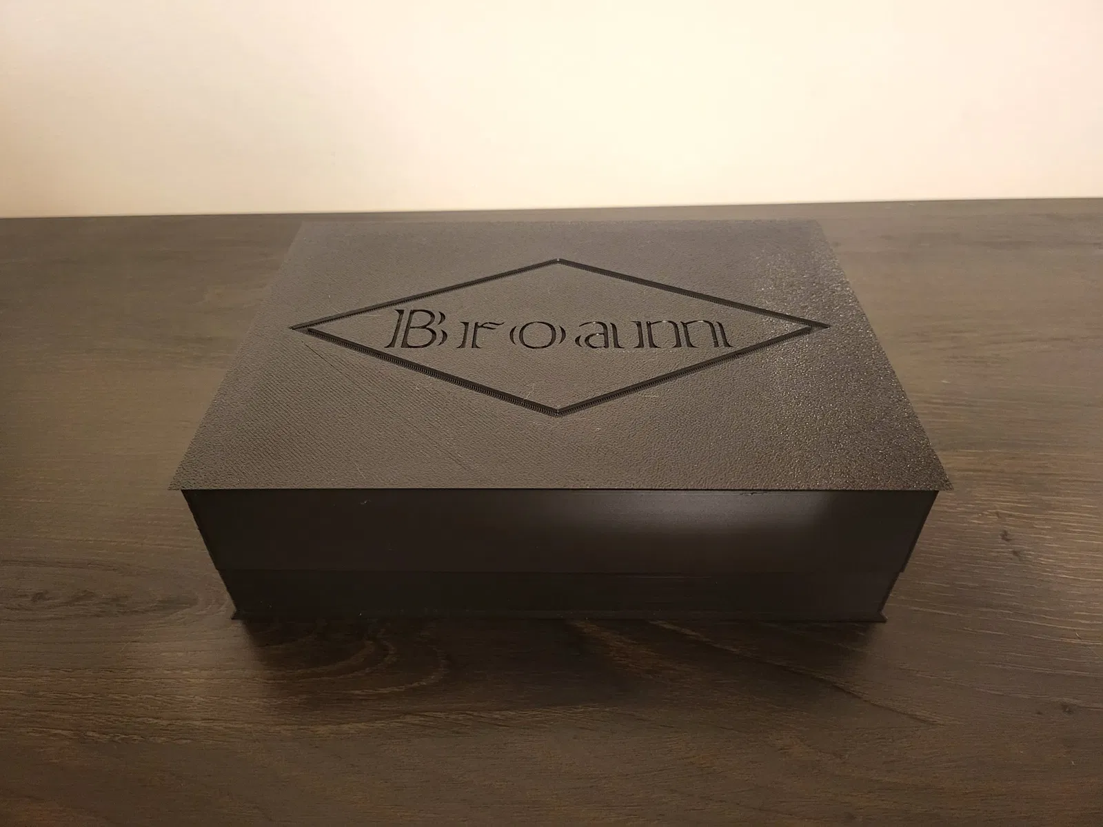 Nắp hộp trong hình có in tên ổng, tuy nhiên cái STL tui cung cấp chỉ có cái hình kim cương khắc vô thôi.