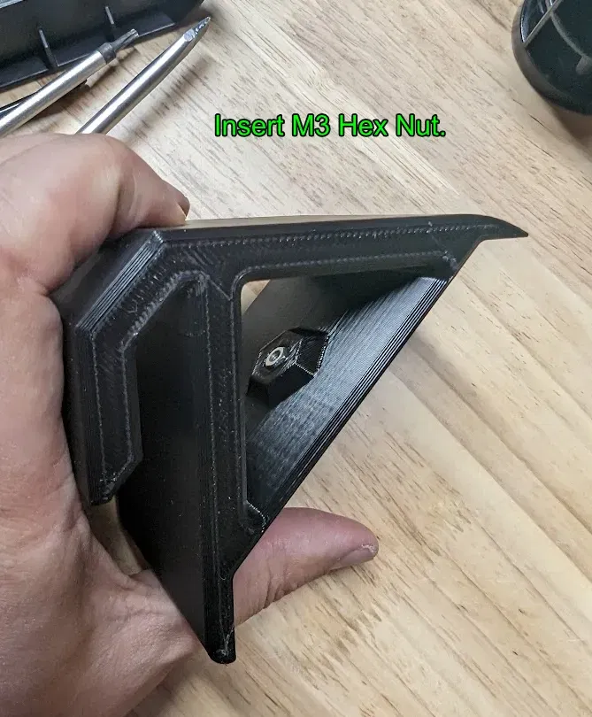Mỗi bộ phận móc F-Box cần một đai ốc lục giác M3 và bu lông M3x10, cả hai đều có sẵn từ phần cứng còn lại của bất kỳ máy in Prusa nào. (Nếu bạn không có những thứ đó, keo hoặc một số chất kết dính 3M có lẽ cũng hoạt động tốt.)