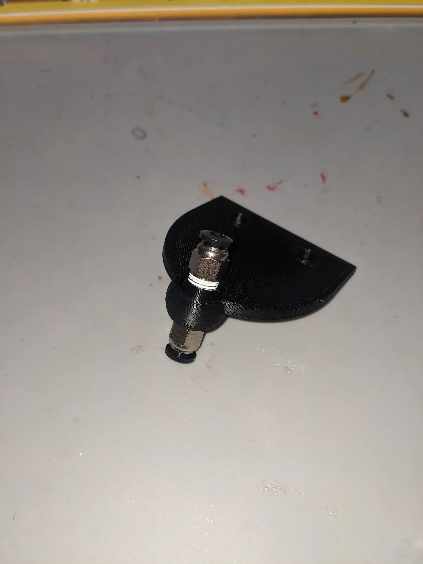 Cái này gắn vào thay cho chỗ giữ dây tóc cũ của máy in 3D, có khớp xoay tiện lợi lắm luôn. Giúp dây tóc di chuyển mượt mà hơn, không bị rối hay kẹt khi in.