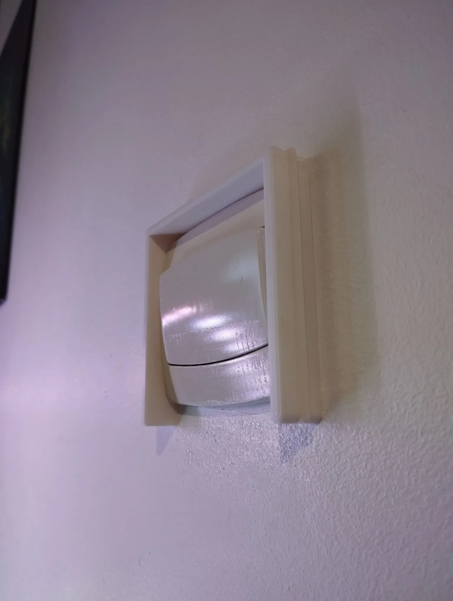 Tui tạo ra cái vỏ bọc công tắc này để xài công tắc Aquara mà không cần phải tháo cái cũ ra. Kích thước bên trong: 81cm x 85cm. Bạn có thể xài cái vỏ này không thôi, hoặc dán trực tiếp công tắc Aquara lên luôn.