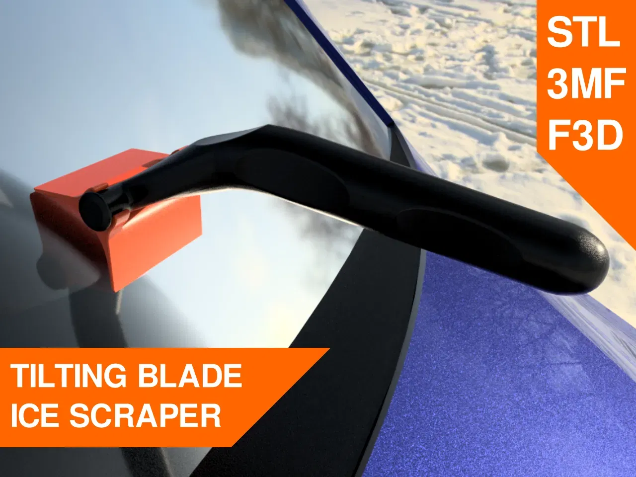 Dụng cụ cạo băng với lưỡi dao nghiêng, bám theo đường cong kính chắn gió và cạo ở góc 45 độ. Lưỡi dao có thể thay thế dễ dàng. Thiết kế cho cuộc thi "Làm tan băng xe hơi 2023". File STL, 3MF, F3D có sẵn.