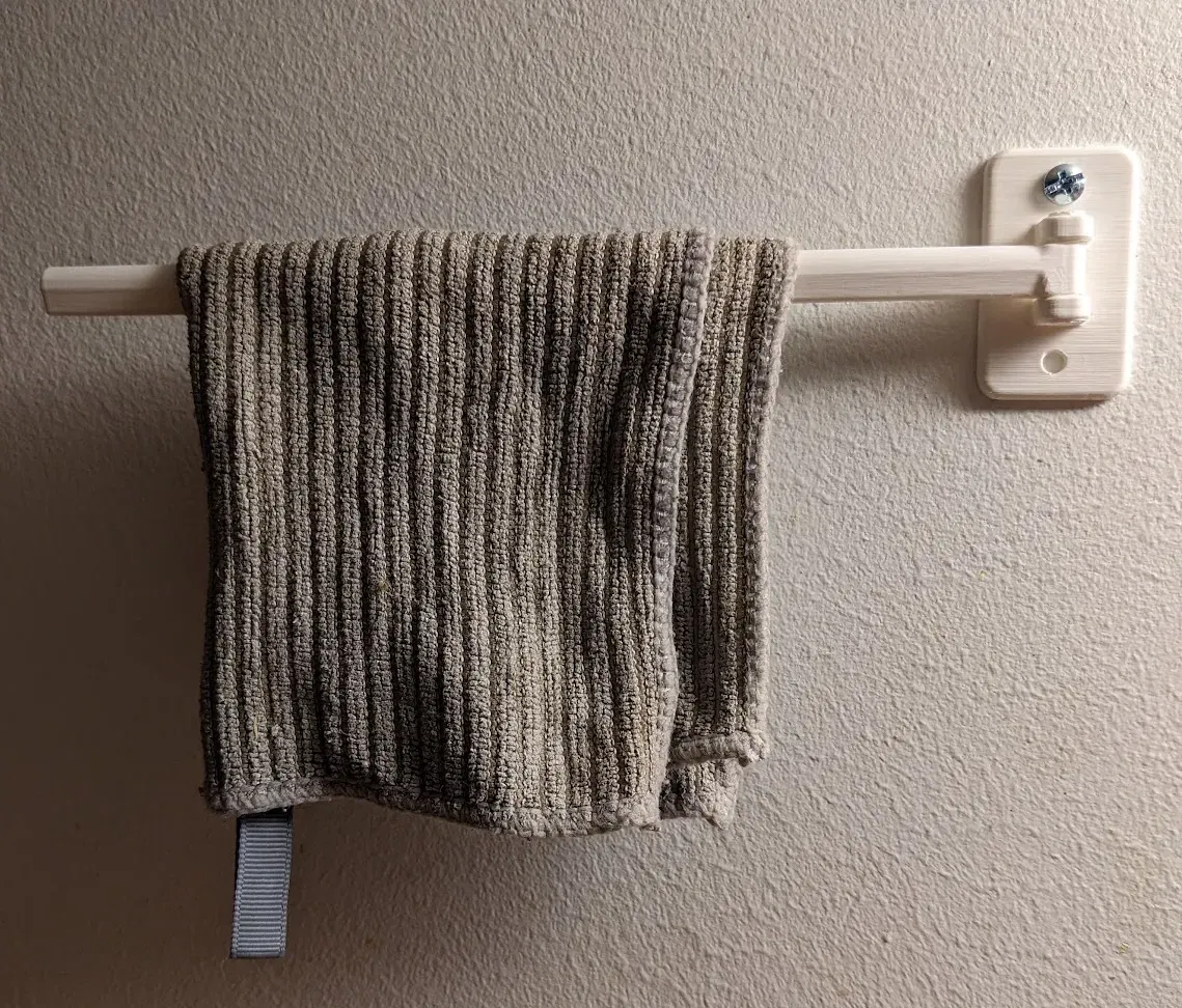 Cái móc này dùng để treo khăn trong bếp cho mau khô nè. Nên khoan lỗ bằng mũi khoan 6mm để cho nó mượt mà. Móc treo tường và con bu lông nên in đứng để có kết quả tốt nhất. Xem file 3mf để biết hướng dẫn đặt vật thể được khuyến nghị. Cài đặt in khuyến nghị: Layer 0.2mm, Perimeter 3, Infill 20, Top/Bottom 3.
