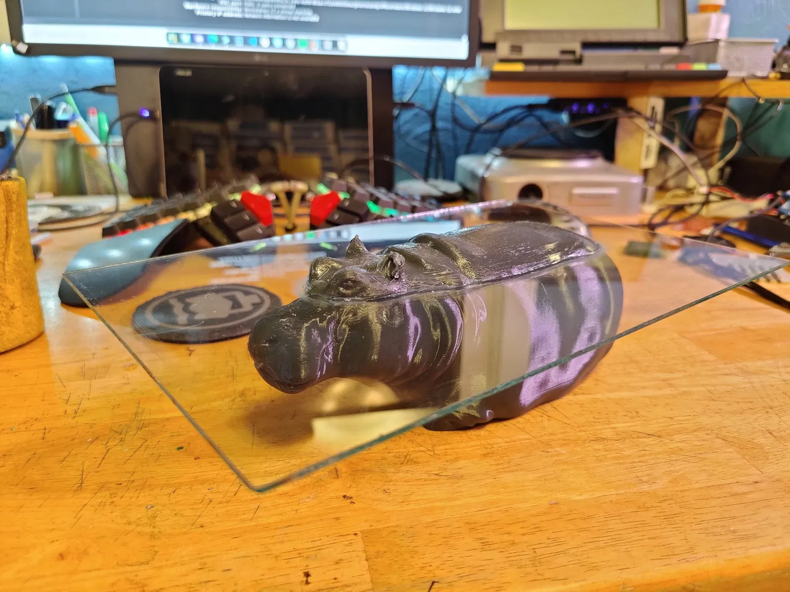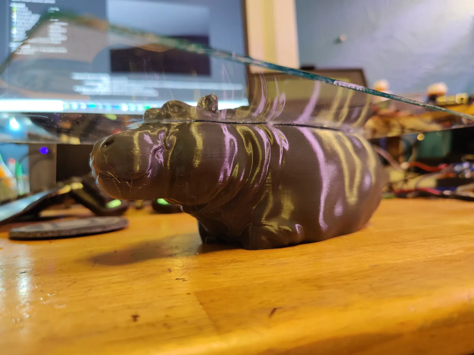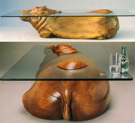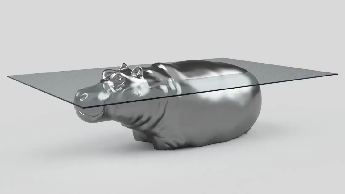 Bàn kính trông giống như một con hà mã đang nổi lên từ nước.