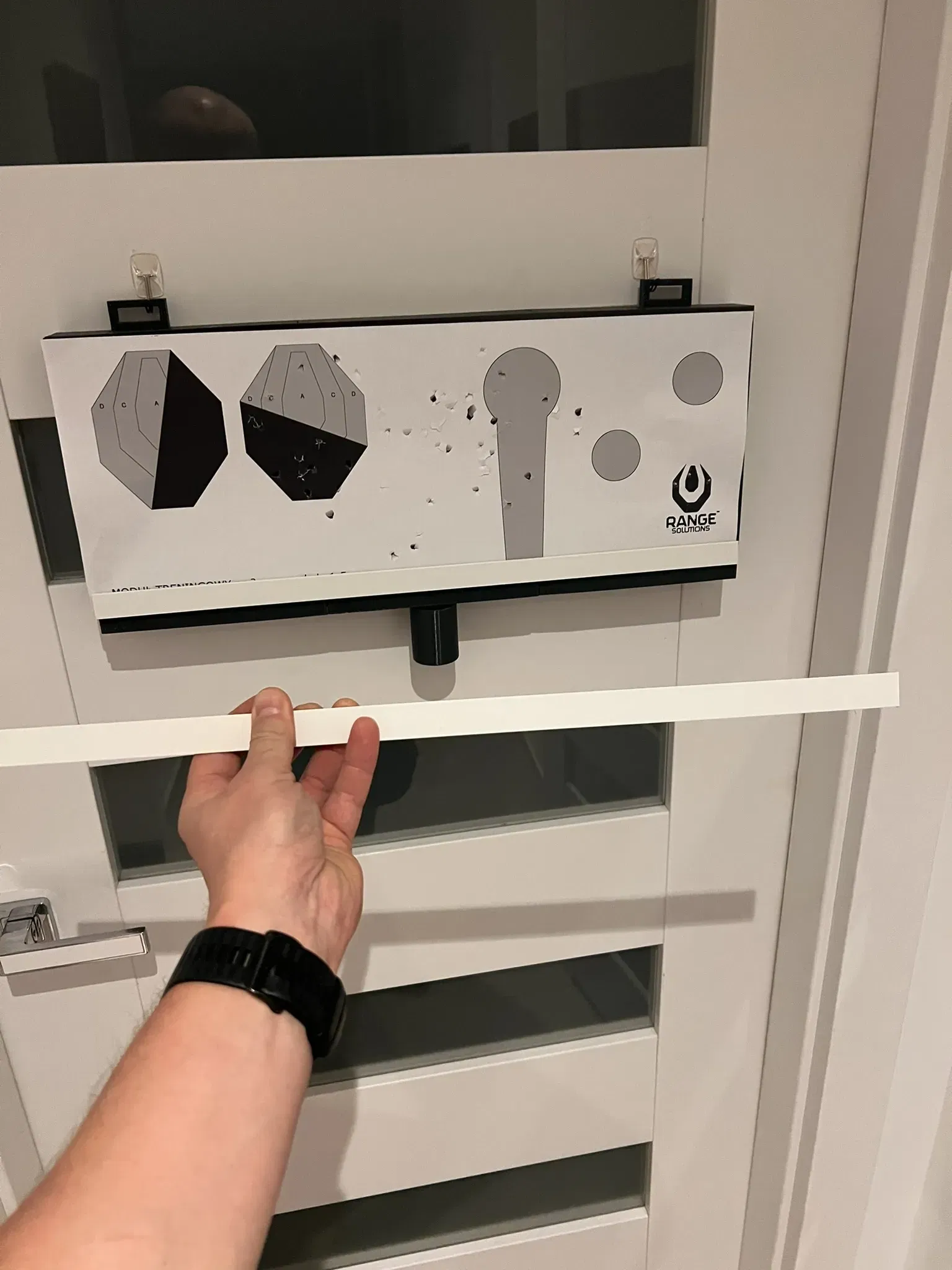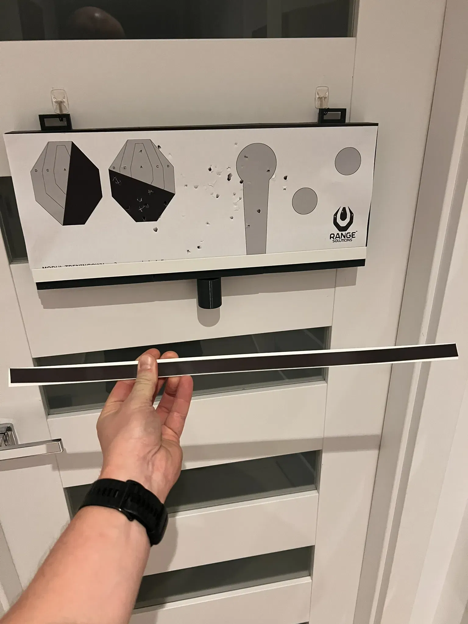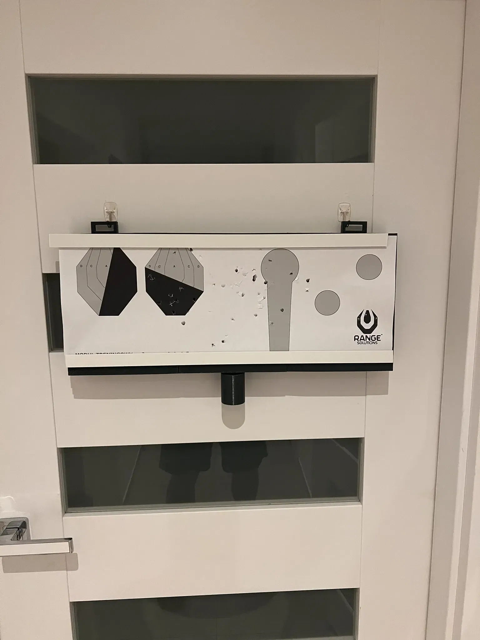 Ramka do powieszenia w dowolnym miejscu domu. Służy do strzelania na sucho do tarczy z airsoft gun. Po zamontowaniu od tyłu ramki dowolnej sklejki czy tablicy korkowej i przyklejeniu do niej cienkiej gąbki i następnie materiału jest gotowa do użycia. Warstwa ta absorbuje siłę strzału, a kulki po zamortyzowaniu na gąbce i materiale zbierają się w dokręcanym do ramki pojemniku, dzięki czemu możemy je ponownie użyć i ponadto nie zaśmiecają domu. Tarcze mocujemy do ramki z użyciem cienkich ogólnie dostępnych listew plastikowych na które naklejamy magnetyczną taśmę 3M. Ta sama taśma naklejana jest również na ramkę.