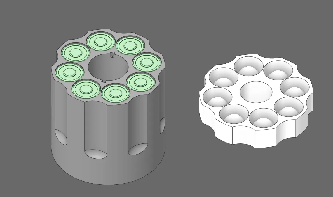 Hộp đựng pin 18650, được thiết kế độc đáo với hình dáng giống như băng đạn xoay của súng lục. Sản phẩm này là giải pháp lưu trữ pin 18650 hiệu quả và mang tính thẩm mỹ cao, phù hợp cho những ai yêu thích sự sáng tạo và độc đáo.