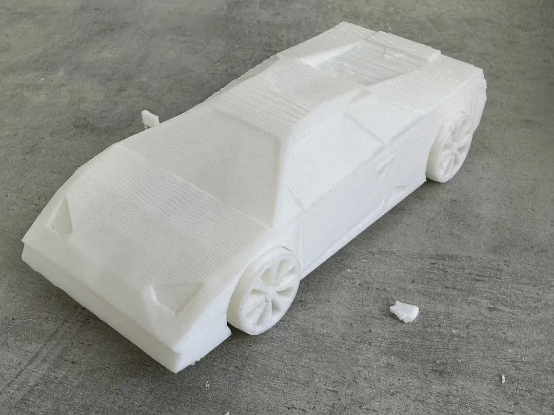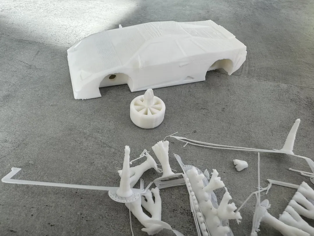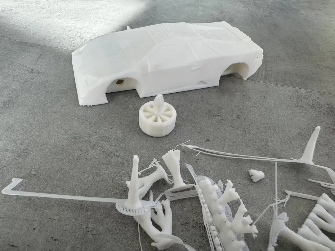 Tôi đã in chiếc xe đầu tiên bằng PLA, độ dày đường in 0,2mm, bật hỗ trợ organic, độ đặc 10%. Độ đặc 100% cho bánh xe.