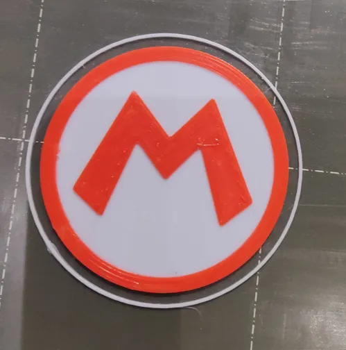 Bắt đầu với sợi màu trắng, rồi đổi màu ở độ cao 0.8mm cho mấy cái huy hiệu Mario với Luigi nha.