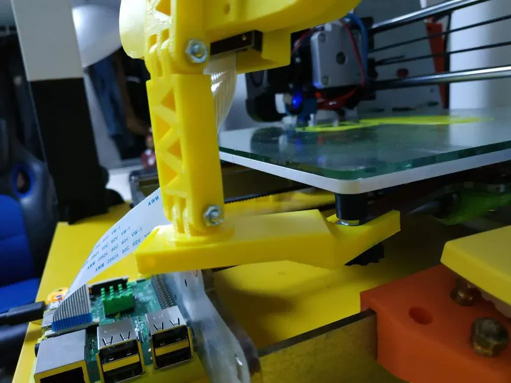 Tui chỉnh sửa cái đế của bộ phận gia nhiệt vì nó chạm trục Y. Do camera tui bự hơn, tui lấy vỏ khác và làm nó tương thích với mặt lưng. In bằng Prusa Steel với sợi Fervi3d Pla Vàng, không cần Rafts/Supports, độ phân giải 0.2, infill 25%.